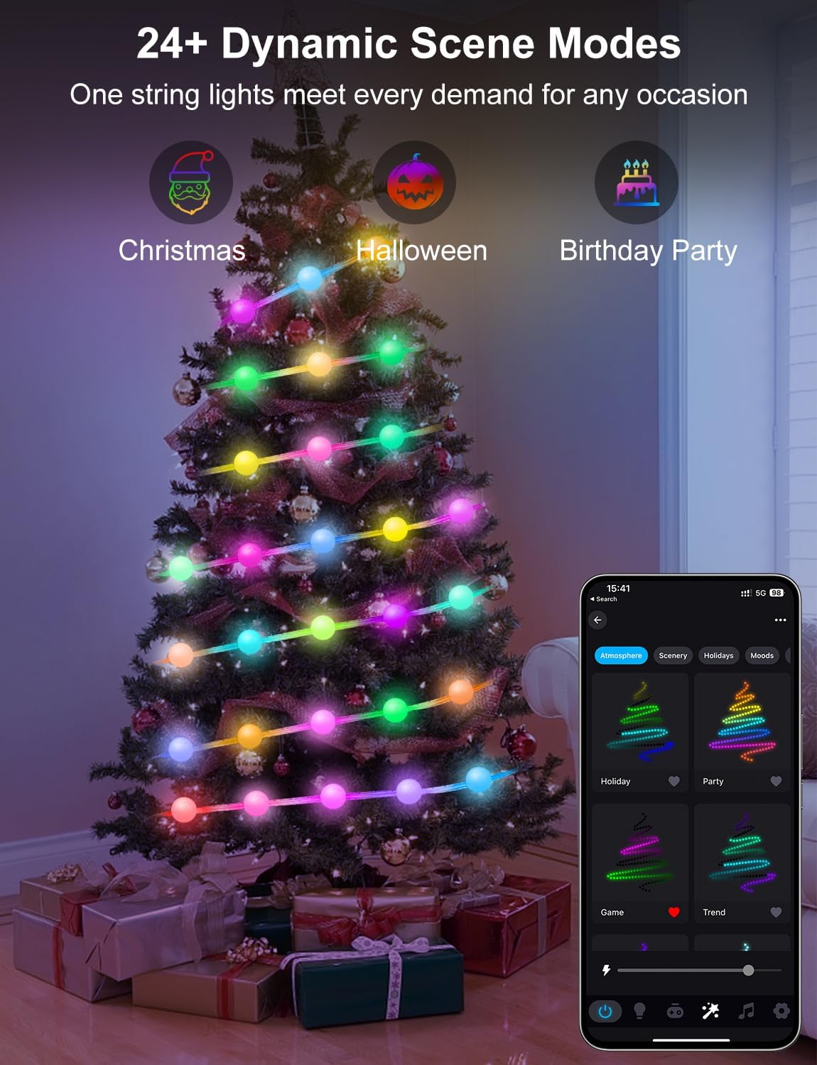 33Ft Smart Globe String Lights RGB Built in Chip for Bedroom Christmas