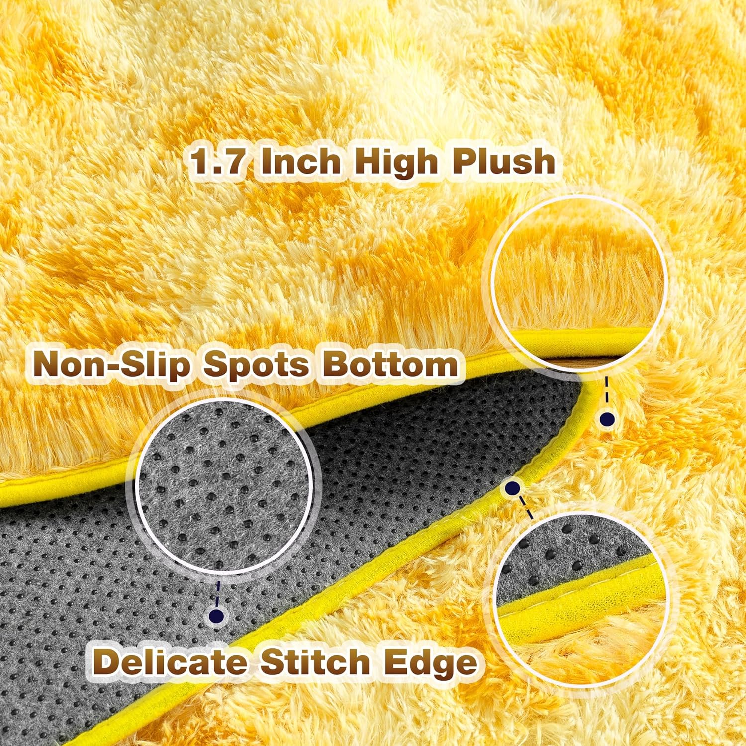 Super Fluffy Living Room Rug: The 4×6 tie-dyed yellow living room rug is made of high-density microfiber with a 1.7-inch pile that won’t shed over time. Each step on this plush carpet provides unparalleled comfort, a delicate and pleasurable feeling of sheer softness and coziness