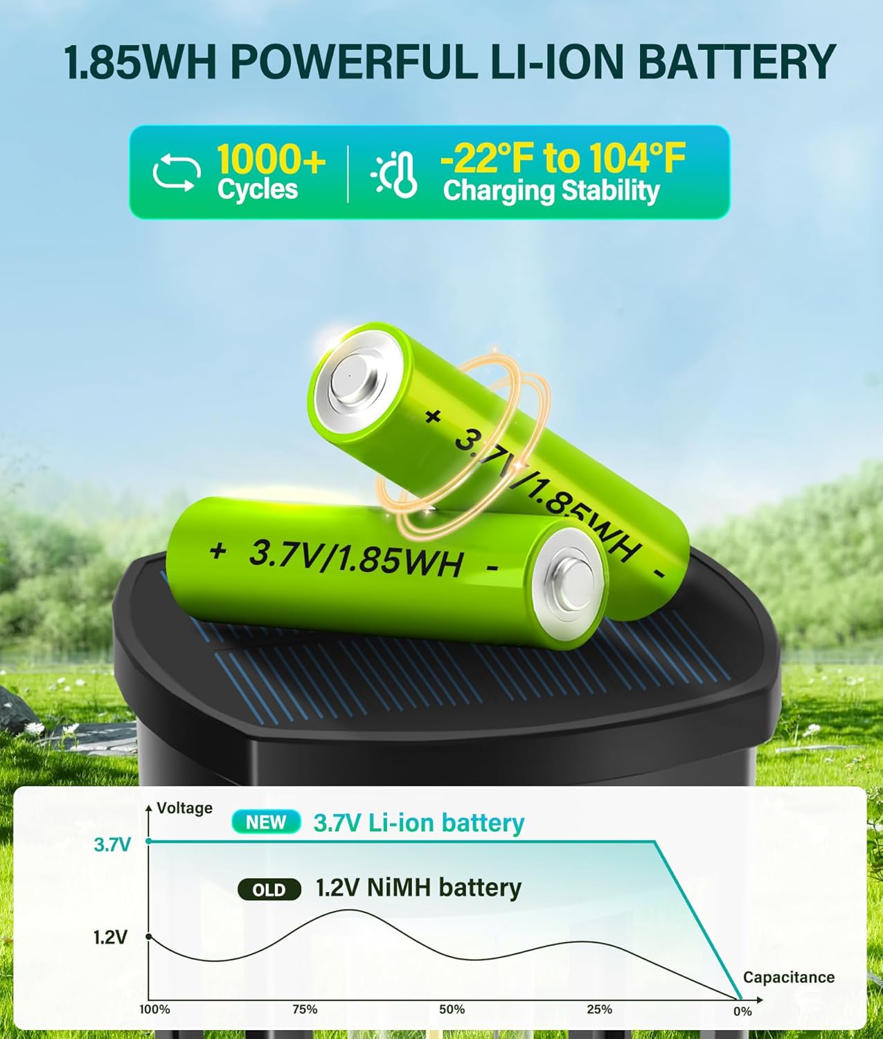 COXSENI Solar walkway Lights Features: -2x Faster Charging – Large Size Solar Panel – 3.7V/1.85WH Li-ion Battery -40LM/12H+ Long Lasting – IP65 Waterproof