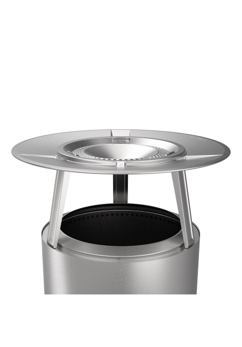 Cool air comes in the bottom vents to feed the fire and enters between the two layers of stainless steel to be heated up. Having cool air come in the bottom vents allows the fire to always plenty of oxygen. Since more oxygen can reach the fuel source, fire wood is burned more efficiently than traditional fire pits. The air that enters the double wall warms up and is pushed out over the fire. This creates a second burn that burns off the small particles of wood that would have been smoke.