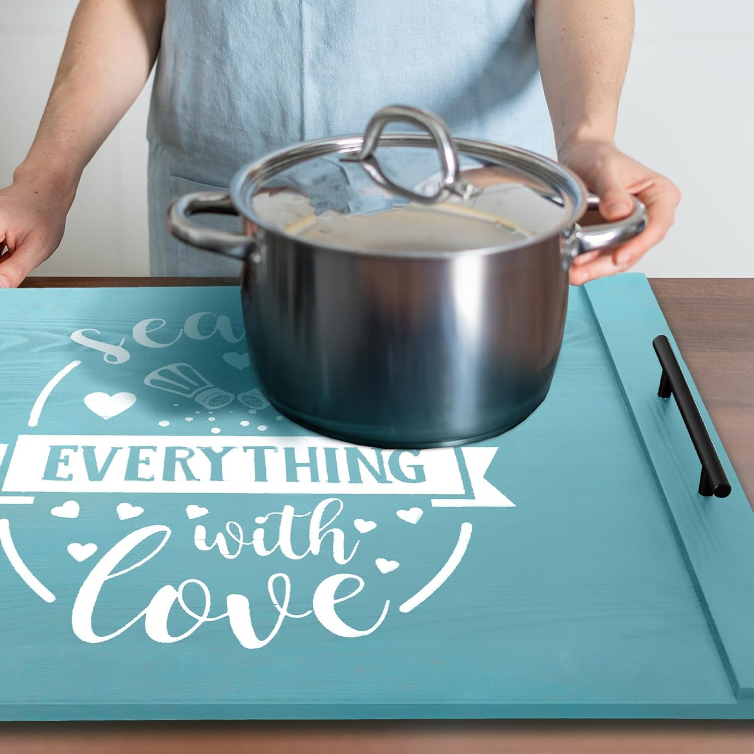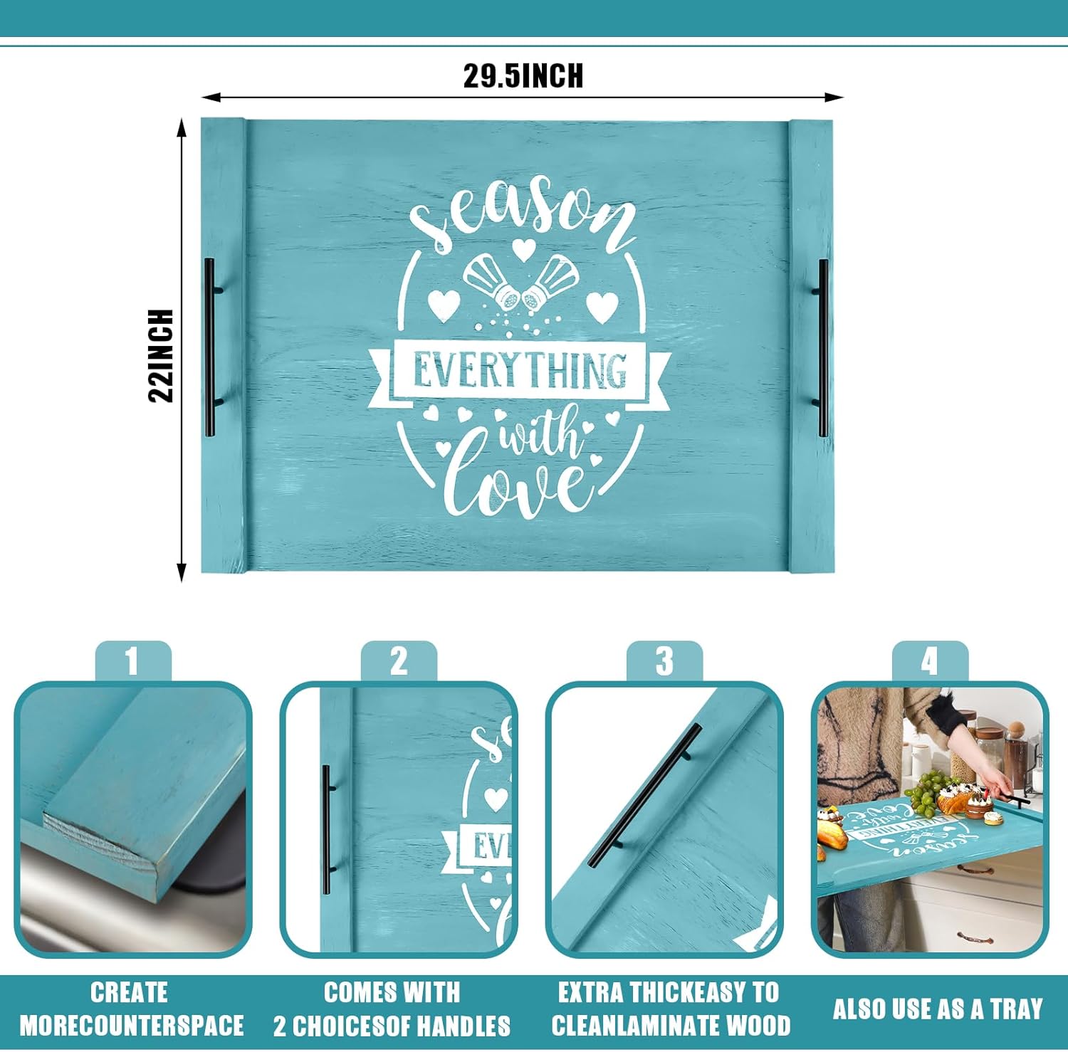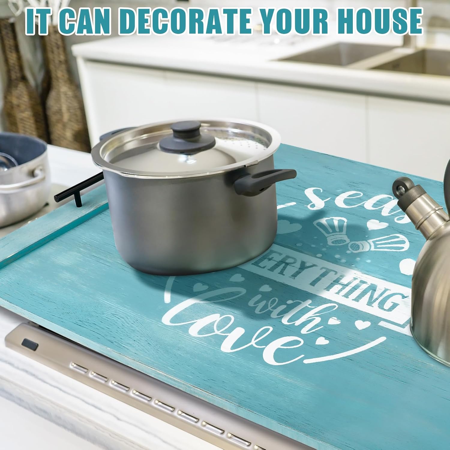 Spiareal Noodle Board Stove Wooden Cover with Handles 29.5 x 22 inche Stove Top Cutting Board Laminate Farmhouse Electric Stove Gas Cover Handmade for Kitchen Counter (Cute)