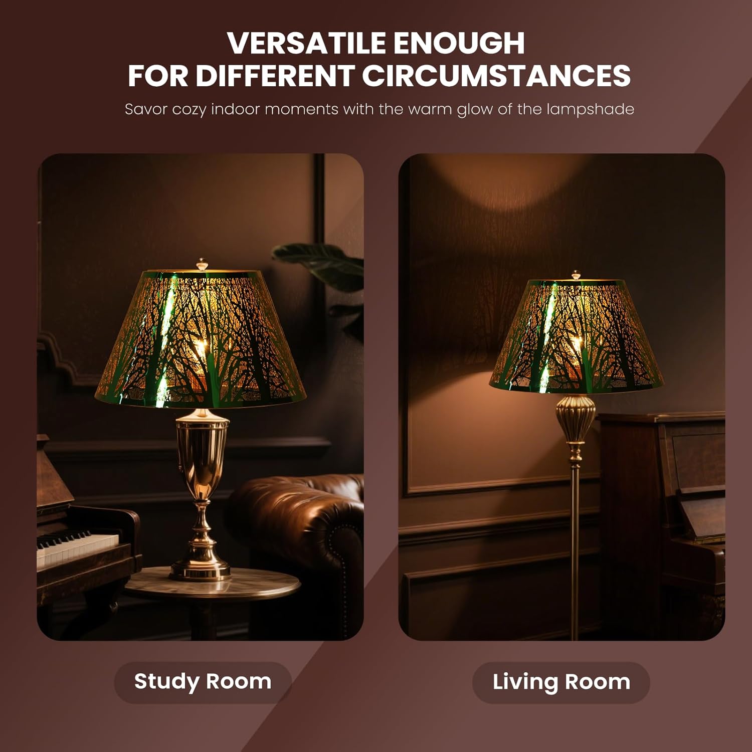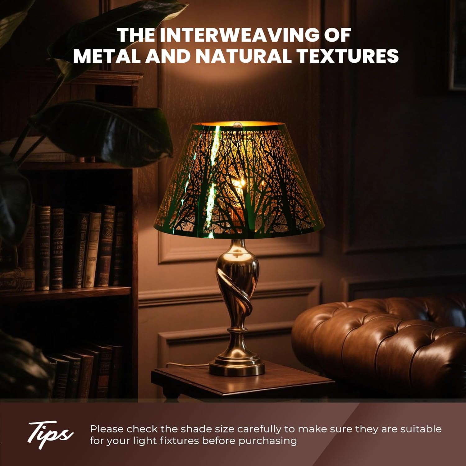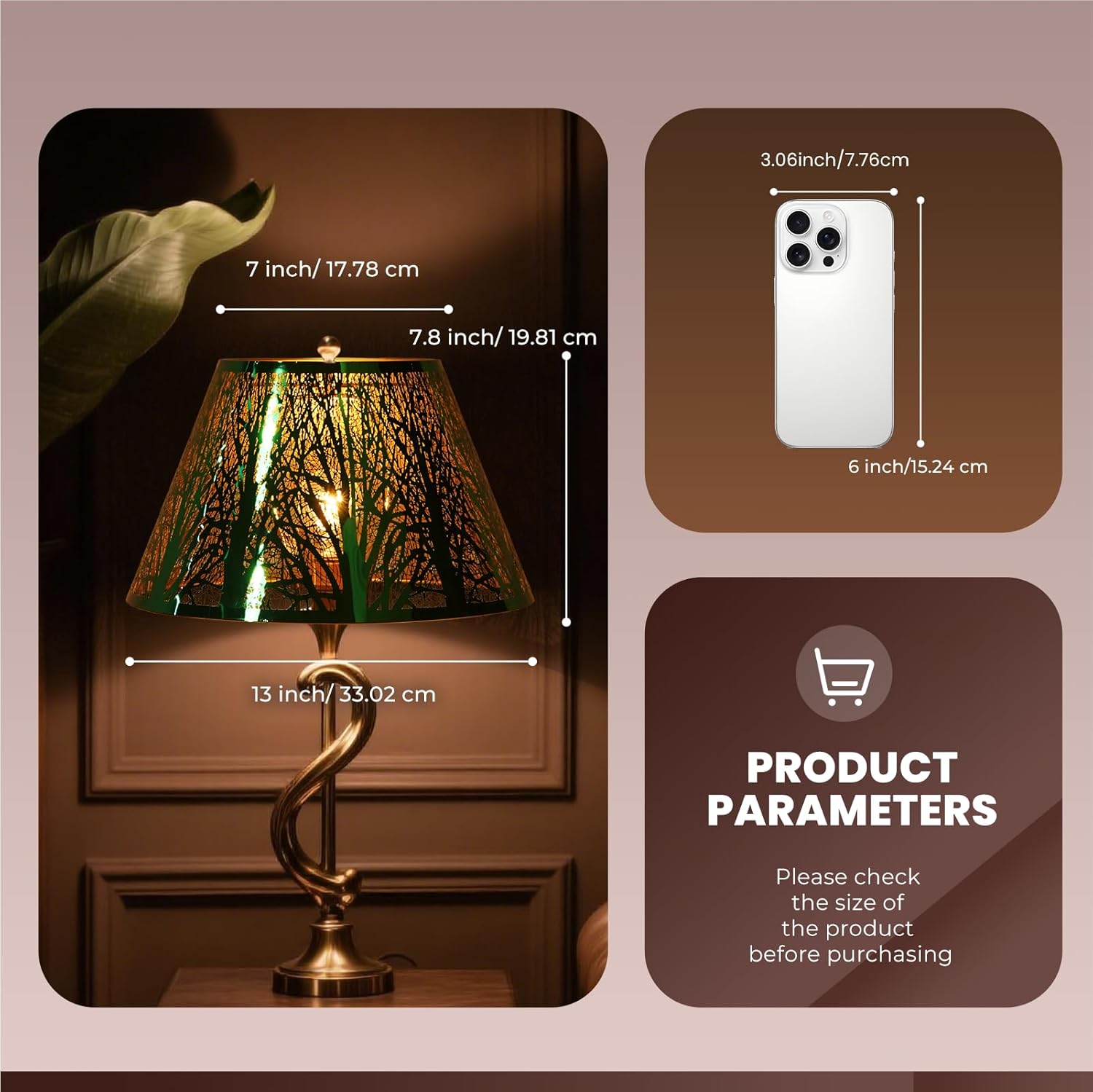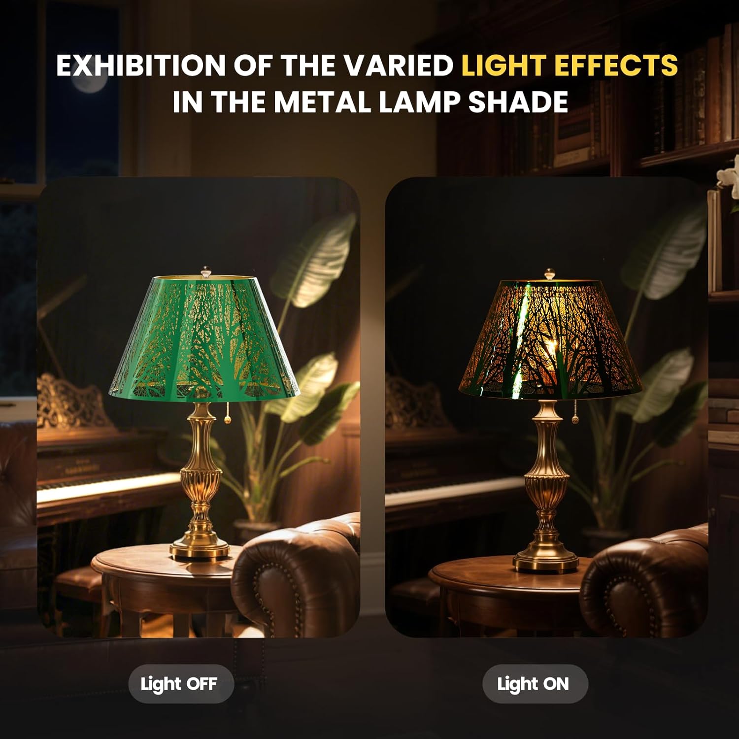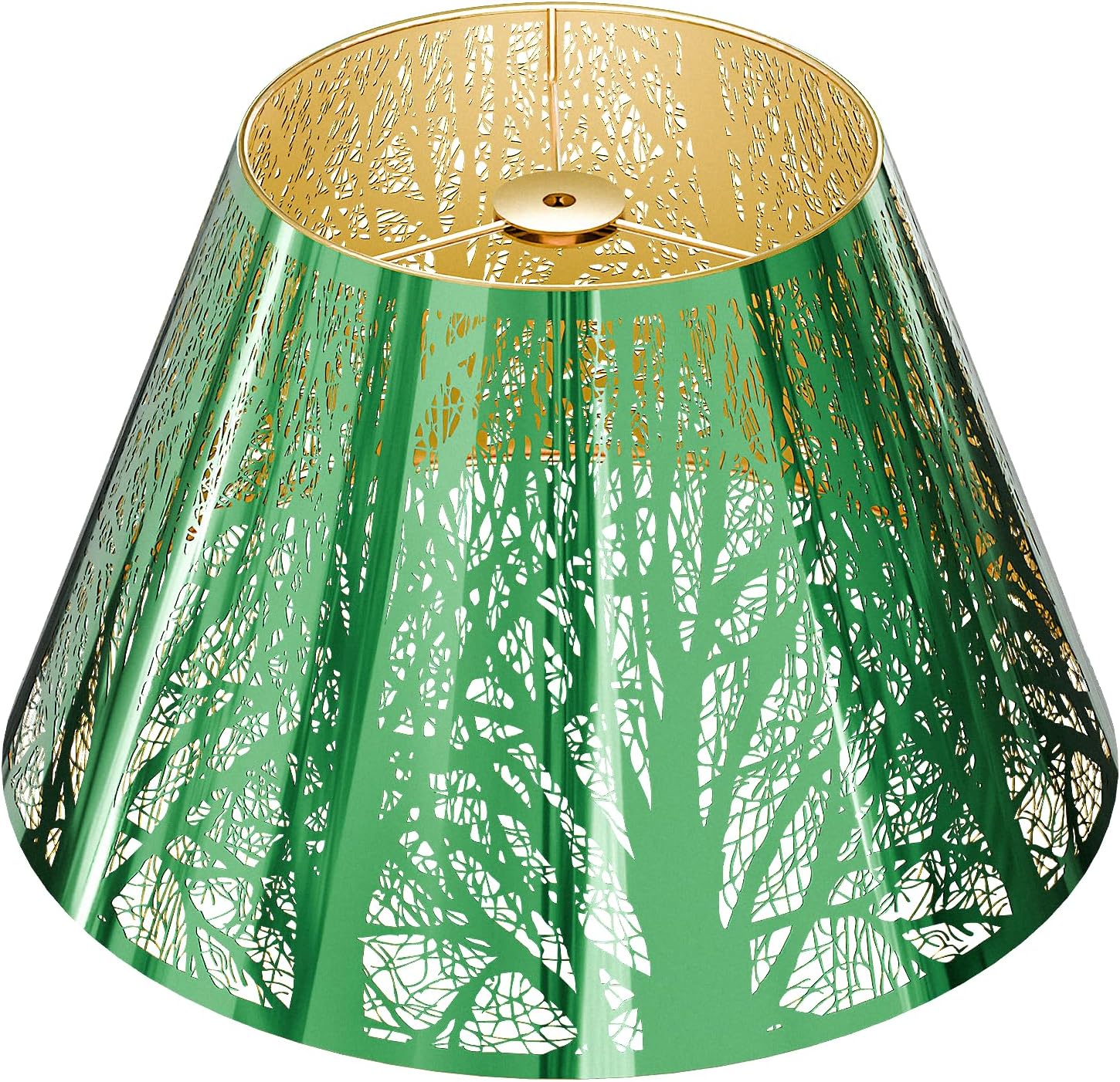 Stainless Steel Lamp Shade, ALUCSET Barrel Lampshade for Table Lamps, Metal Lamp Shade 7″ Top x 13″ Bottom x 7.8″ High(Spider), Green Mirror Finshed Exterior Gold-plated Interior Replacement Shade