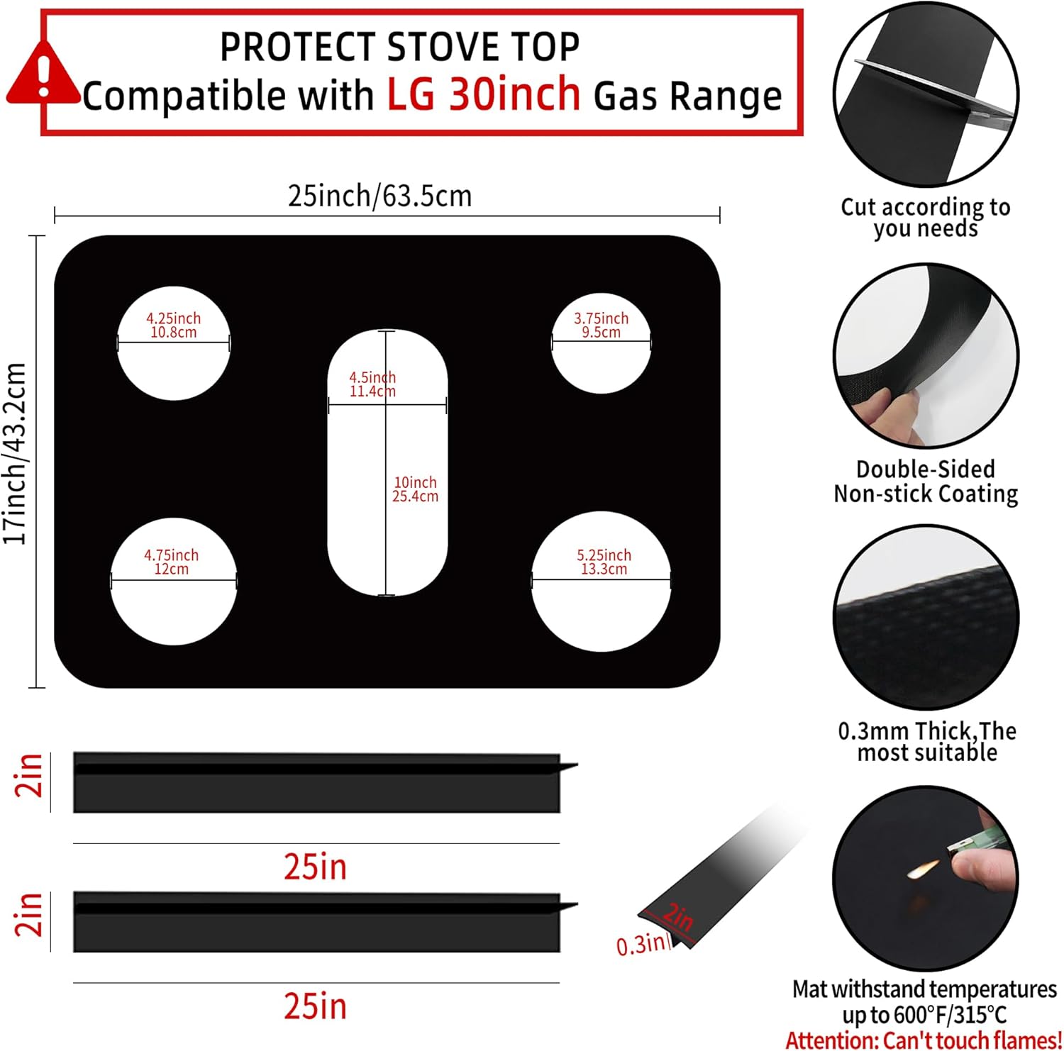 【Attention Gas Stove Compatibility】 The gas stove cover fit for LG gas ranges Models Kenmore72176033610/Kenmore72176037610, LDG3016, LDG3017, LDG3036, LDG3037, LRG3060, LRG3061, LRG3083, LRG3085, LRG3093, LRG3095, LRG3097, LRG3193, LRG3194