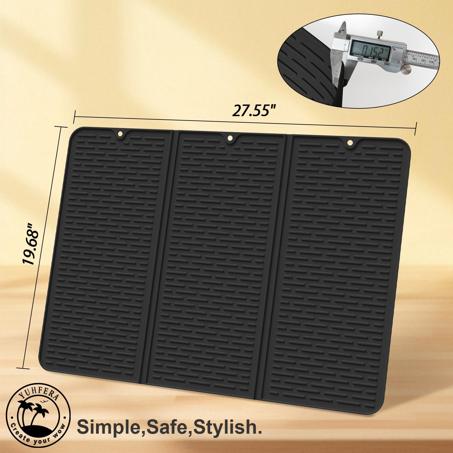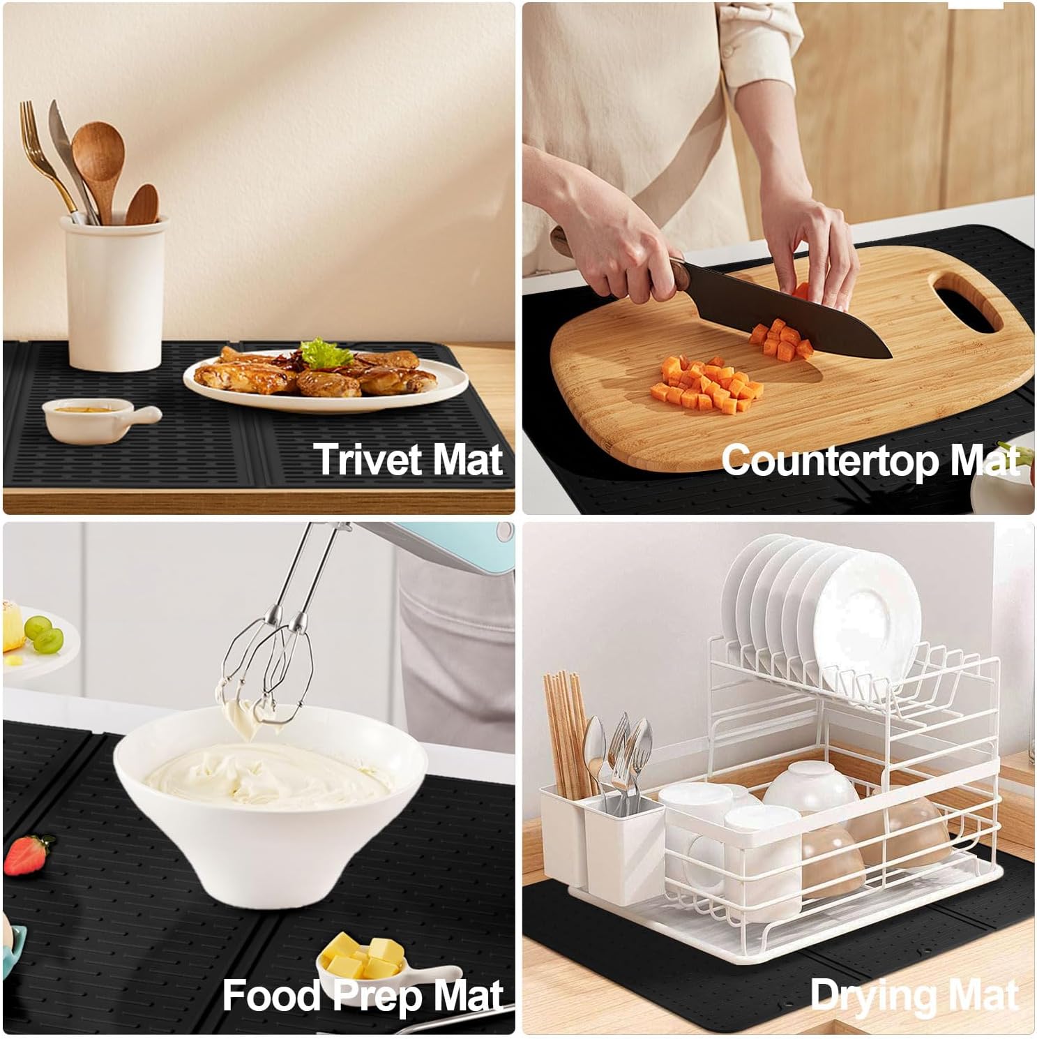 Kitchen Drying Mat:The unique design of wide raised line ridges increases air circulation, improves ventilation, and catches drips from dishes, glasses, fruits, and vegetables. The high edges and waterproof bottom keep the countertop dry and clean, making it an ideal kitchen drying mat.