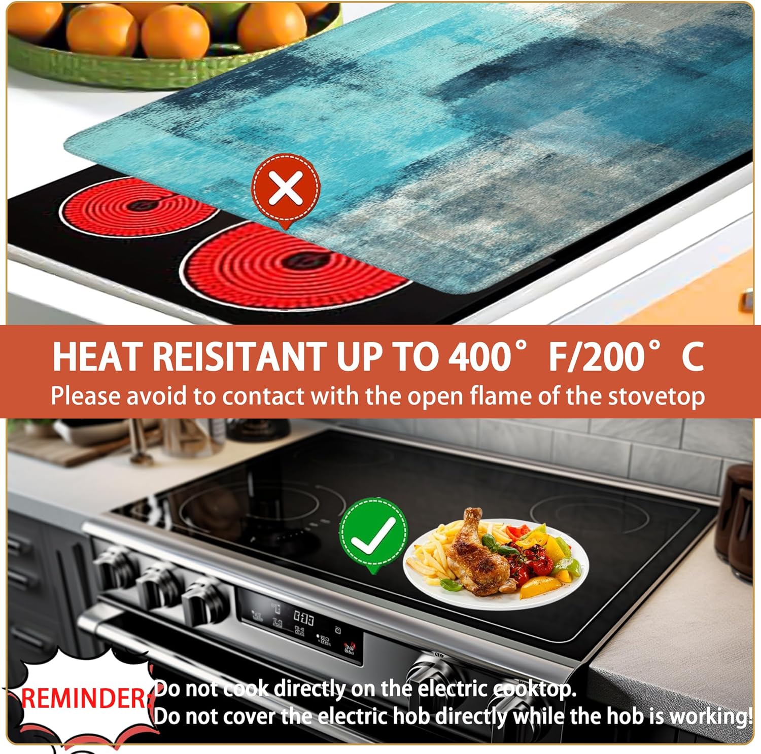 Heat Resistant: The electric stove insulation pad can withstand temperatures up to 400℉,our glass cooktop cover can be used not only as a heat insulating mattress to protect your kitchen table surface,but also as a temporary ironing mat and washer top cover.(Do not put the cover on a hot stove surface)