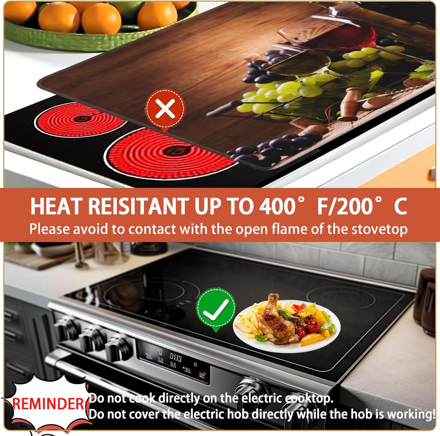 Heat Resistant: The electric stove insulation pad can withstand temperatures up to 400℉,our glass cooktop cover can be used not only as a heat insulating mattress to protect your kitchen table surface,but also as a temporary ironing mat and washer top cover.(Do not put the cover on a hot stove surface)