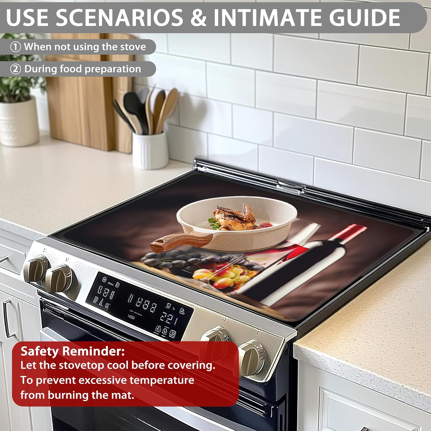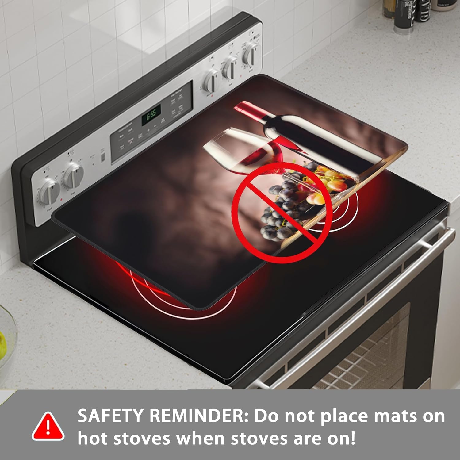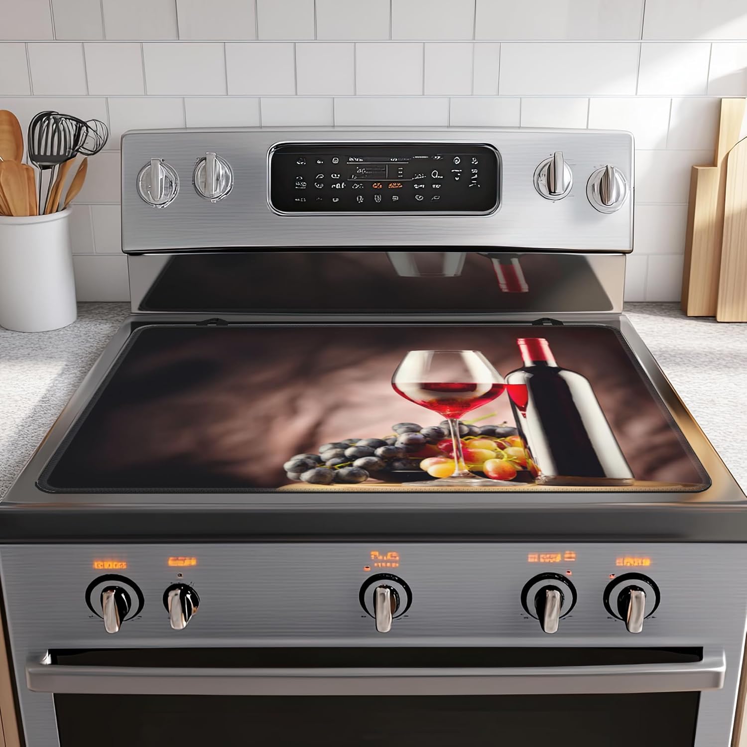 Stove Top Cover for Electric Stove,Red Wine Vintage Extra Thick Rubber Stovetop Protector Mat, Heat Resistant Glass Cooktop Oven Cover 28.5” x 20.5”
