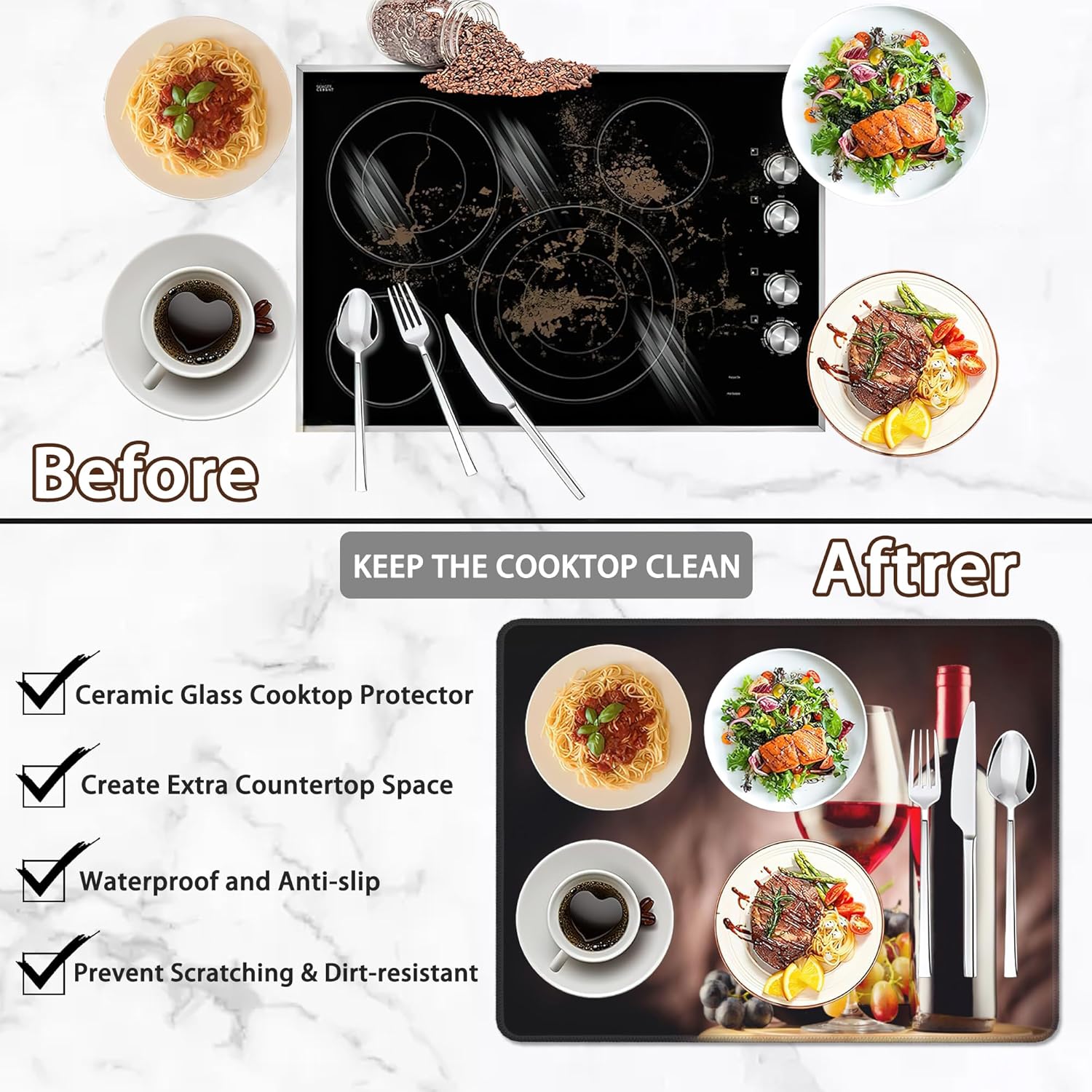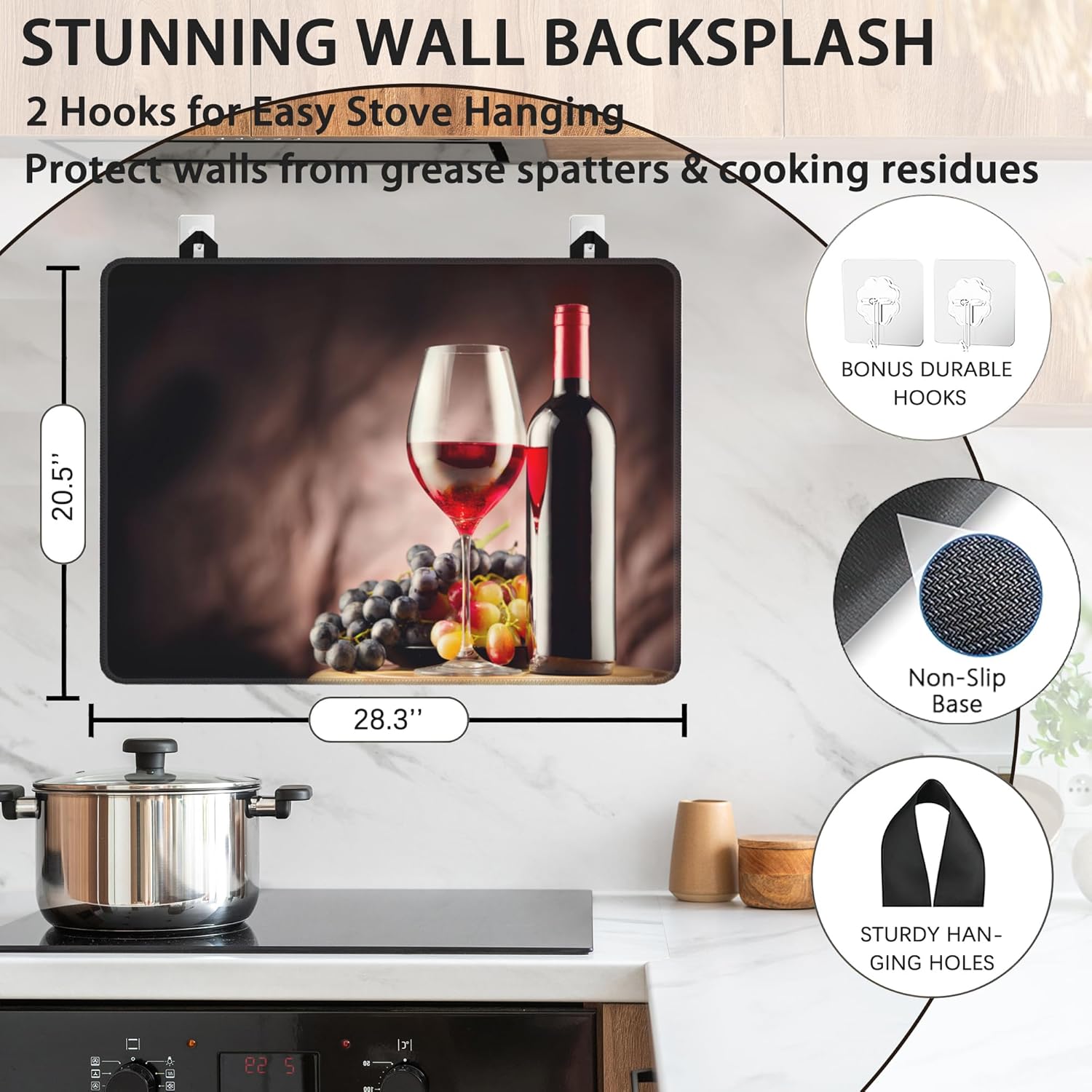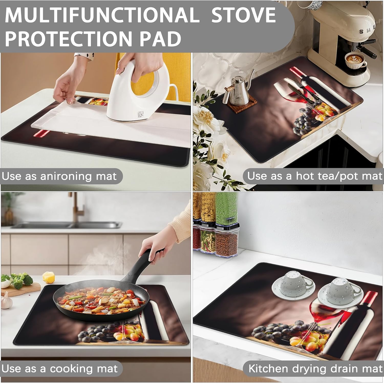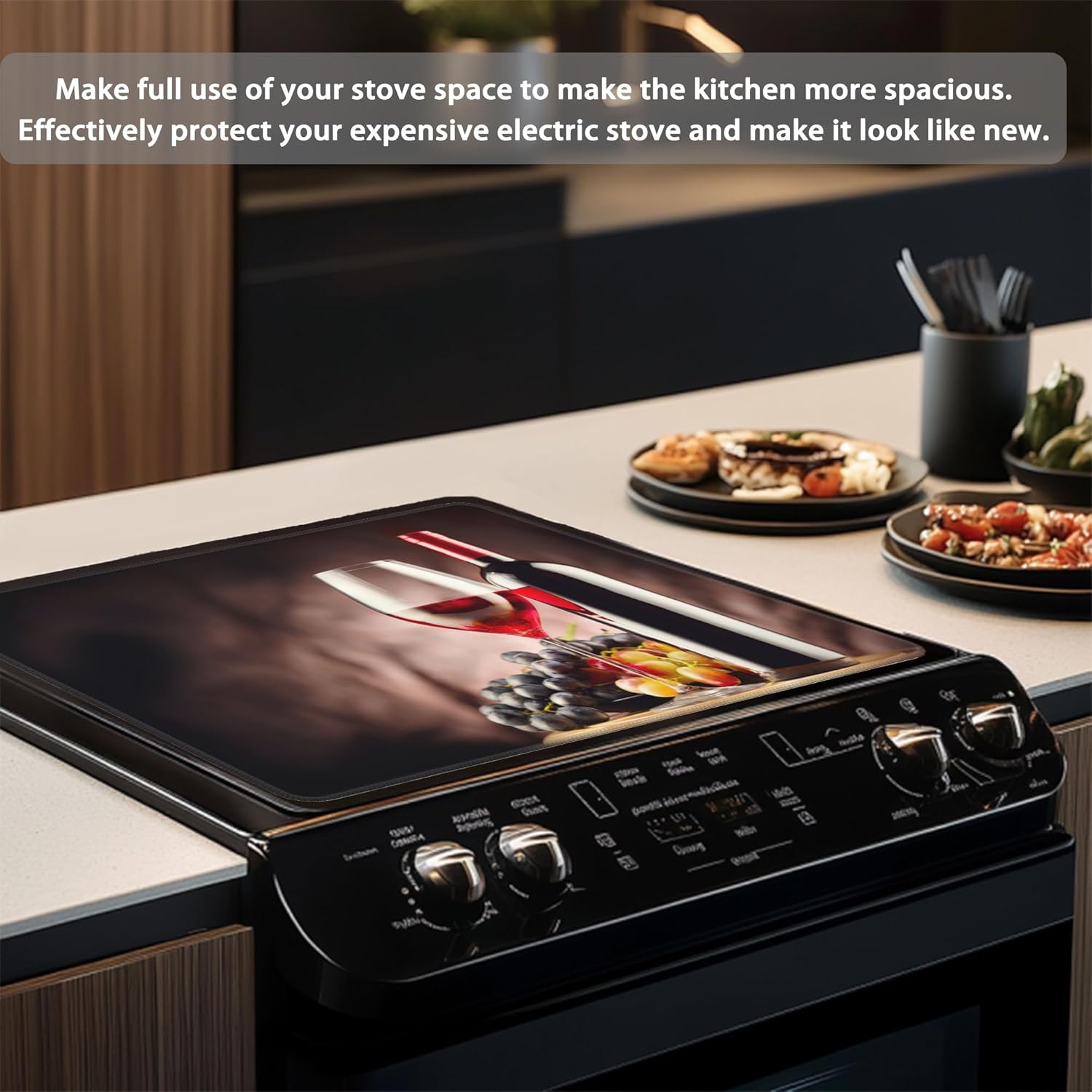 Stove Top Cover for Electric Stove,Red Wine Vintage Extra Thick Rubber Stovetop Protector Mat, Heat Resistant Glass Cooktop Oven Cover 28.5” x 20.5”