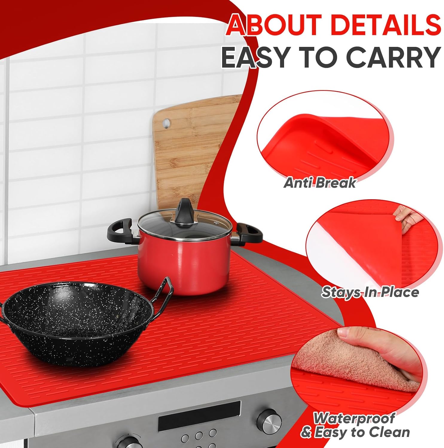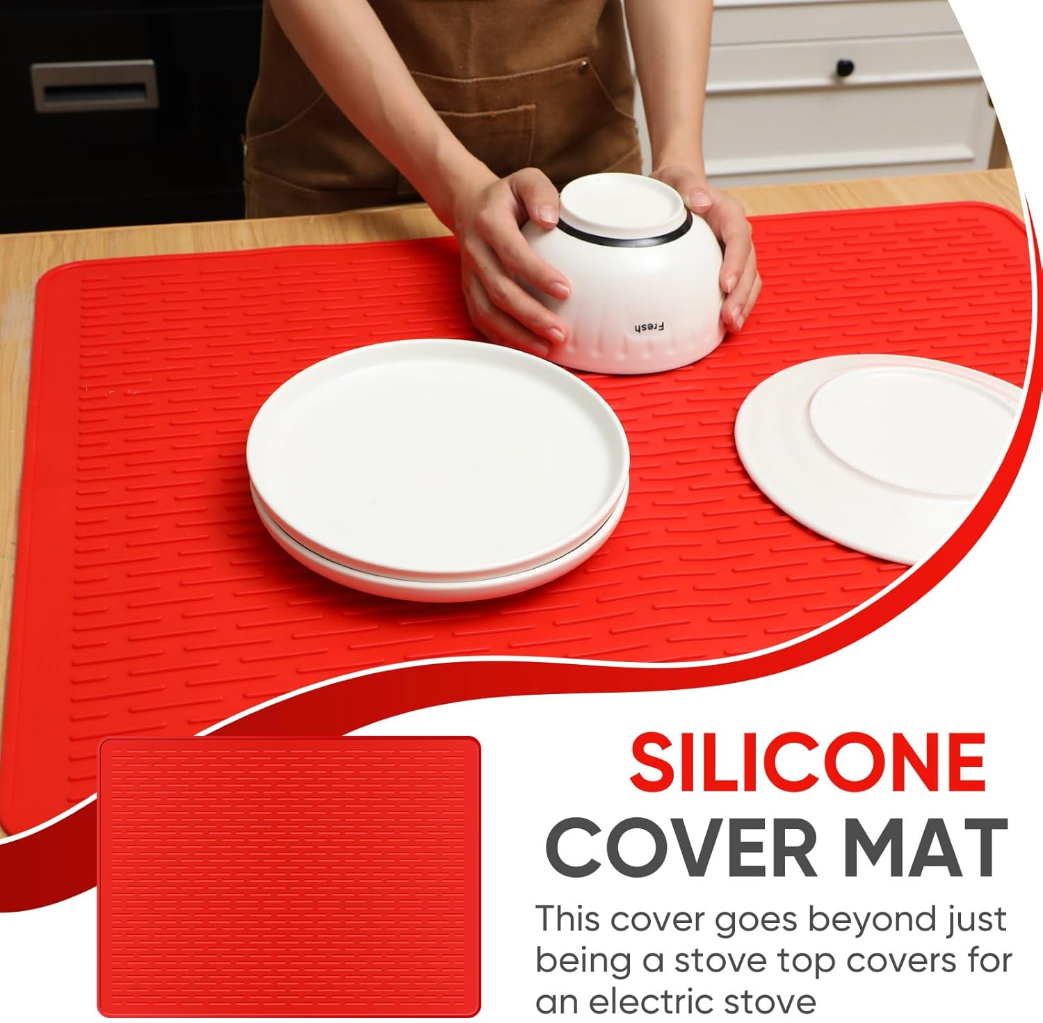 Versatile Usage: this cover goes beyond just being a stove top covers for an electric stove; It’s also incredibly useful as a kitchen drying dat and can be applied to protect your kitchen countertop, table or even your washer dryer top; The silicone material also makes it easy to clean and maintain