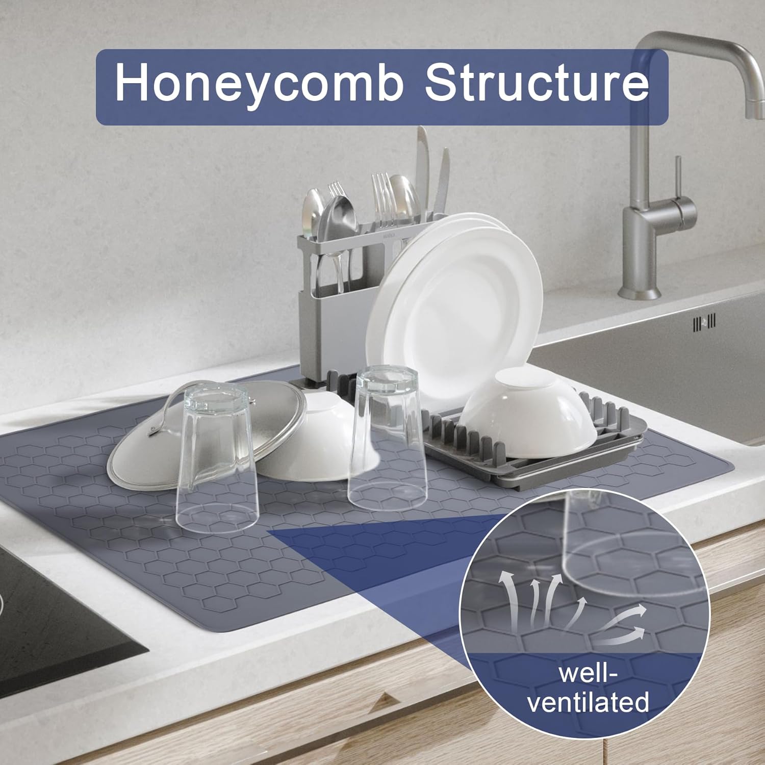 【Kitchen Dish Drying Mat】Made from 100% food-grade silicone, this electric stove top cover is BPA-free, safe, and durable. It doubles as a great drying mat, catching drips from dishes, glasses, plates, fruits, and vegetables. The honeycomb raised ridge promotes airflow, while raised edges and a waterproof base prevent spills, keeping your countertops dry and tidy.