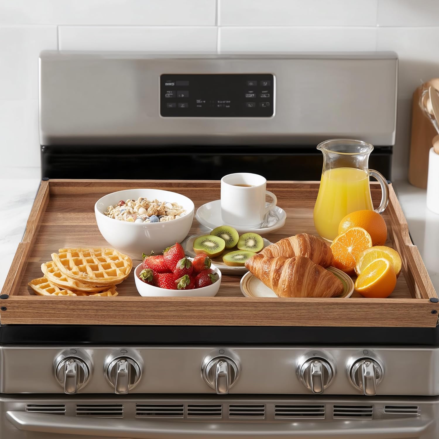 Wide Application: This gas stove cover not only protects the stovetop from scratches, spills and heat damage. It is perfect as a versatile food tray, deli board, fruit and dessert board at family gatherings, outdoor barbecues, camping trips, picnics.