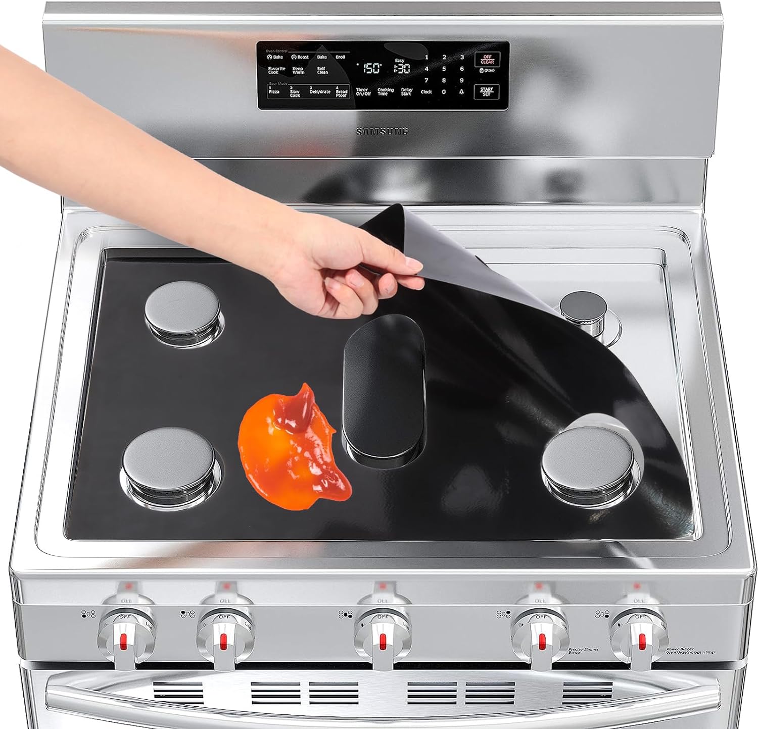 🌟 Note The Size: Gas Stove Burner Covers is only suitable for five-hole Samsung Stove Top Protector within 24.5 inches.Please check your stove size to make sure it matches with this item. If your gas stove is not a Samsung model, please buy it before thinking twice.