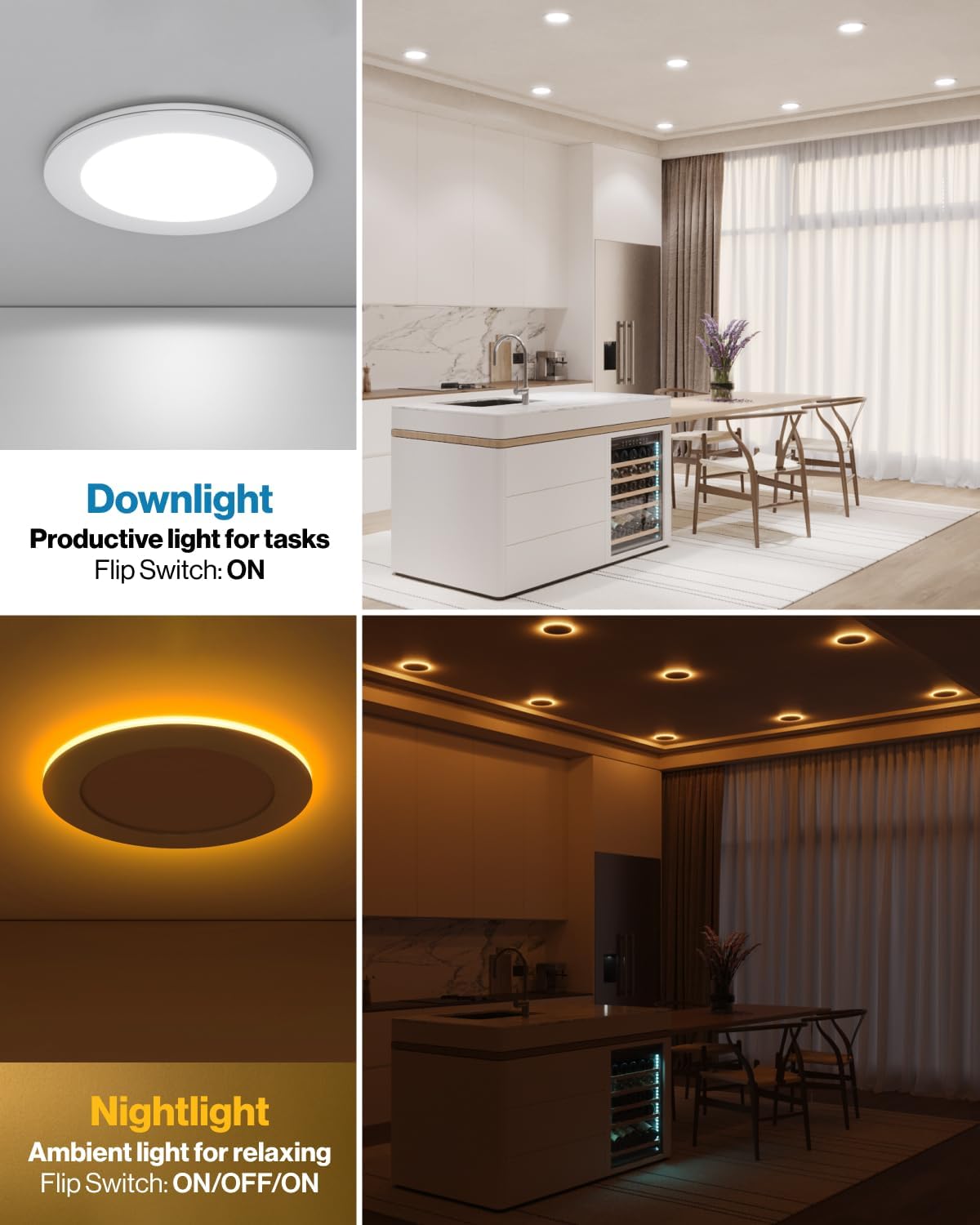 Sunco 4 Inch LED Recessed Lights with Night Light, Slim Ceiling Lighting, 900 LM, 11W (110W Equiv), Selectable CCT 2700K/3000K/3500K/4000K/5000K, Dimmable, Canless with Junction Box ETL 4 Pack