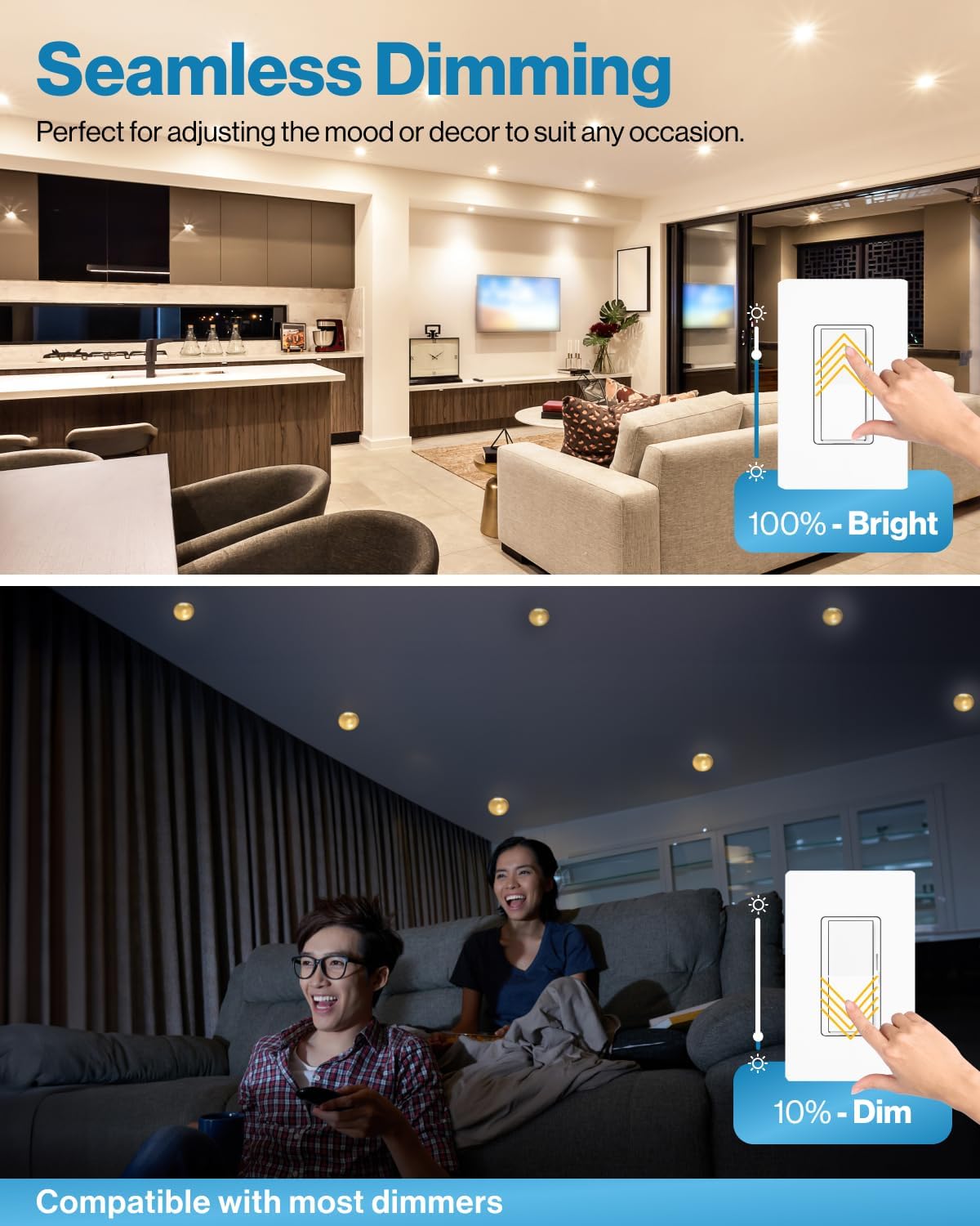 Customers find these LED bulbs bright, with one noting they don’t glare like “daylights,” and appreciate their consistent color temperature that stays the same at low levels. The bulbs work well with dimmer switches, dimming nicely without flicker, and provide good illumination throughout homes. While some customers report they last a long time, others mention they burn out after only two months.