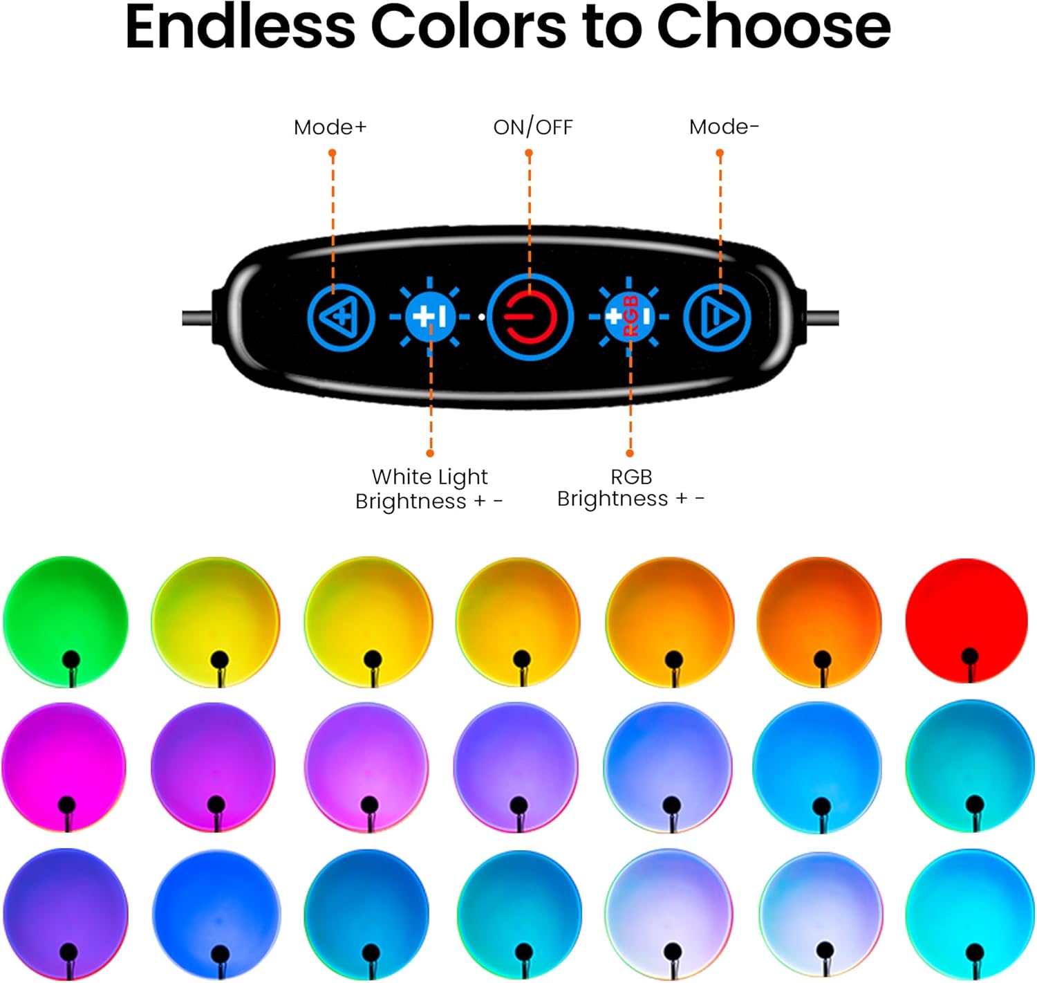 【Not Only 21 Colors】 This Upgraded multi-color sunset lamp projector has a variety of colors, which can be set according to the user’s needs through the APP control and button switch. The colors are more vivid than the first generation of sunset lamp projector, and we use RGB+W mode for this sunset lamp projector, which can be adjusted to more variable colors to meet the needs of users in various scenes.