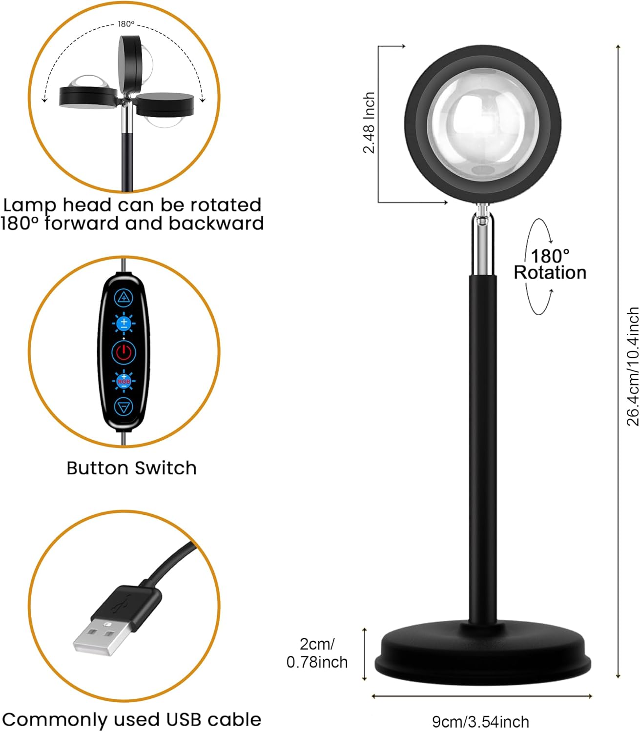 【Not Easy to Get Hot, Long-lasting and Durable】 We have redesigned the interior of this sunset lamp, improved the circuit board, solved the problem that the lamp head is easy to get hot, so that the lamp is not easy to get hot in long-term work, and the materials we use are non-polluting materials, please feel free to use, we hope you can have this sunset lamp for a long time.