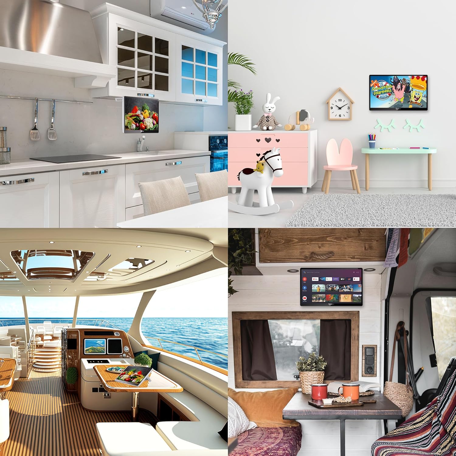 Versatile Placement: Ideal for both travel and home use, this small under counter TV is suitable for kitchens, trailers, RVs, bedrooms, lounges, and more. With dual rear cabinet speakers delivering reduced distortion and excellent broadband sound effects, it ensures an immersive audiovisual experience.