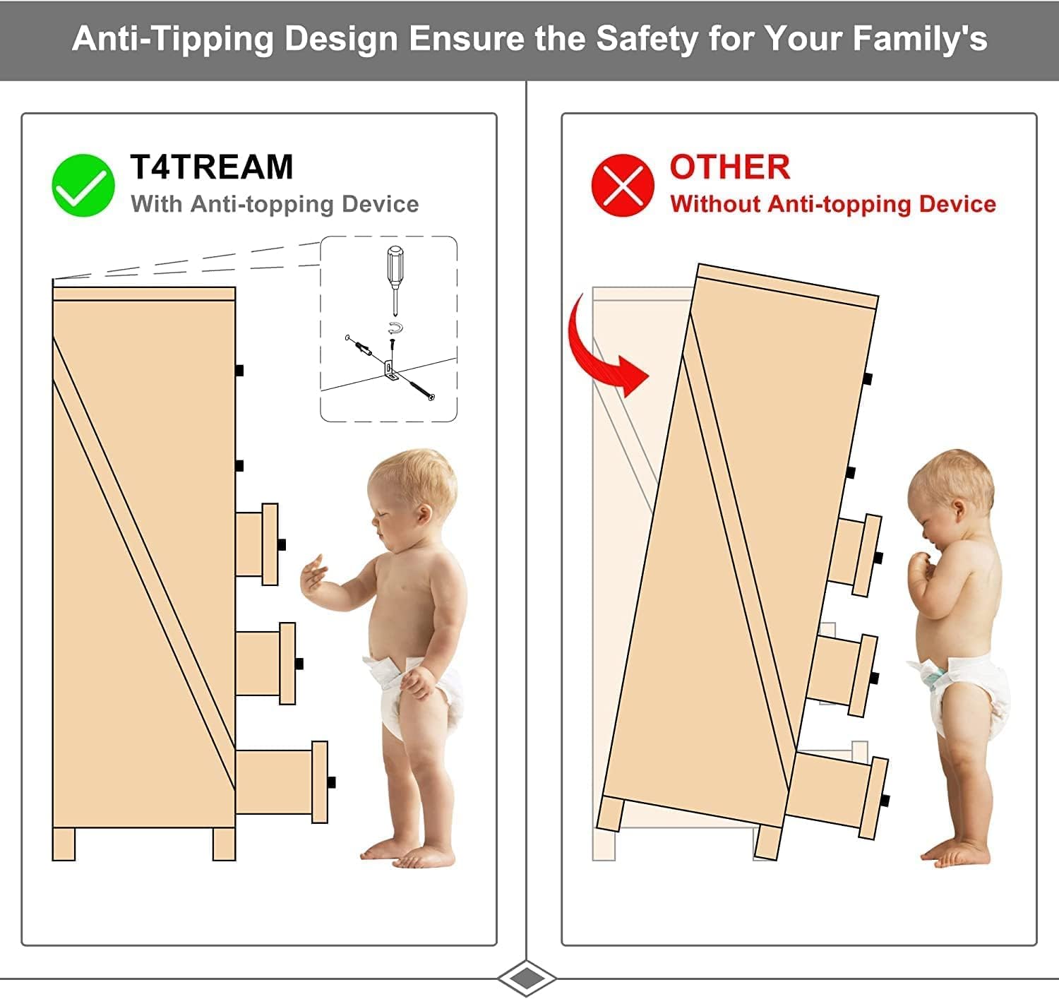 【Sturdy & Durable】The bedroom dresser is made from FSC-Certified wood for long term use, scratch resistant. No strong odor.The widened dresser legs made the dresser does not slide easily, provide great durability and stability.