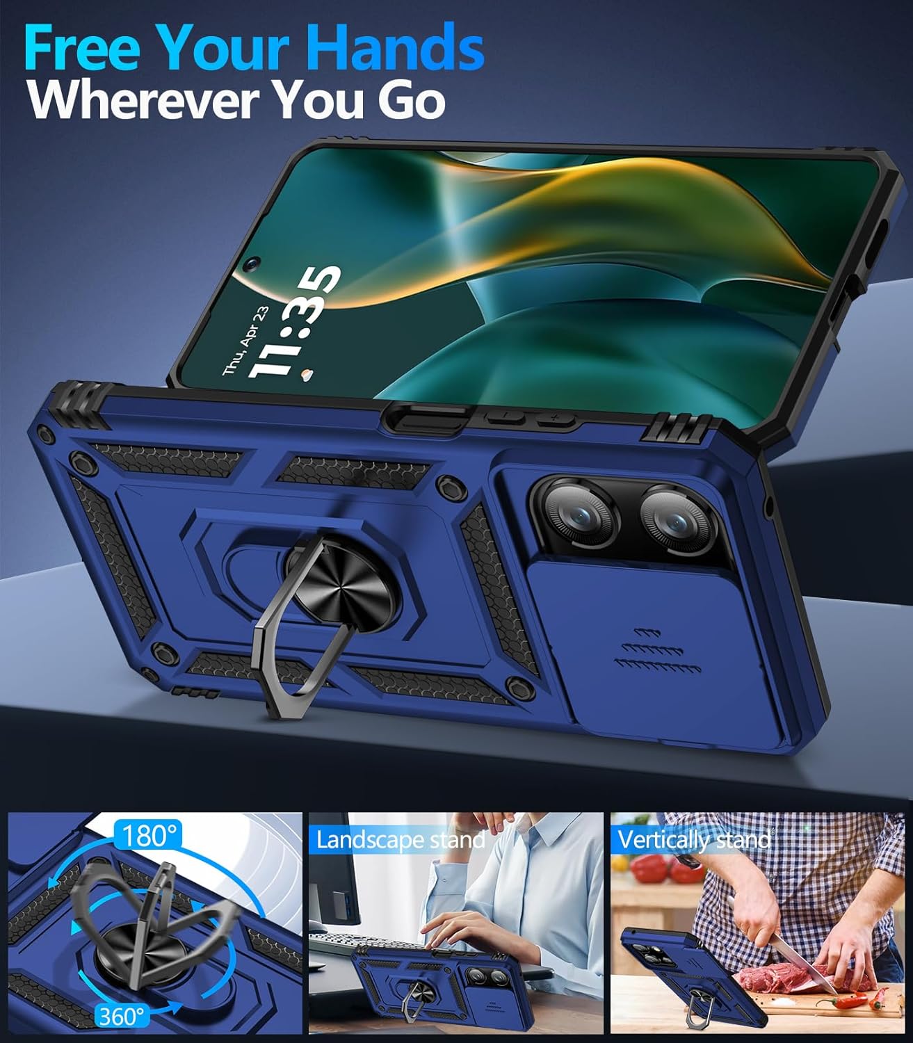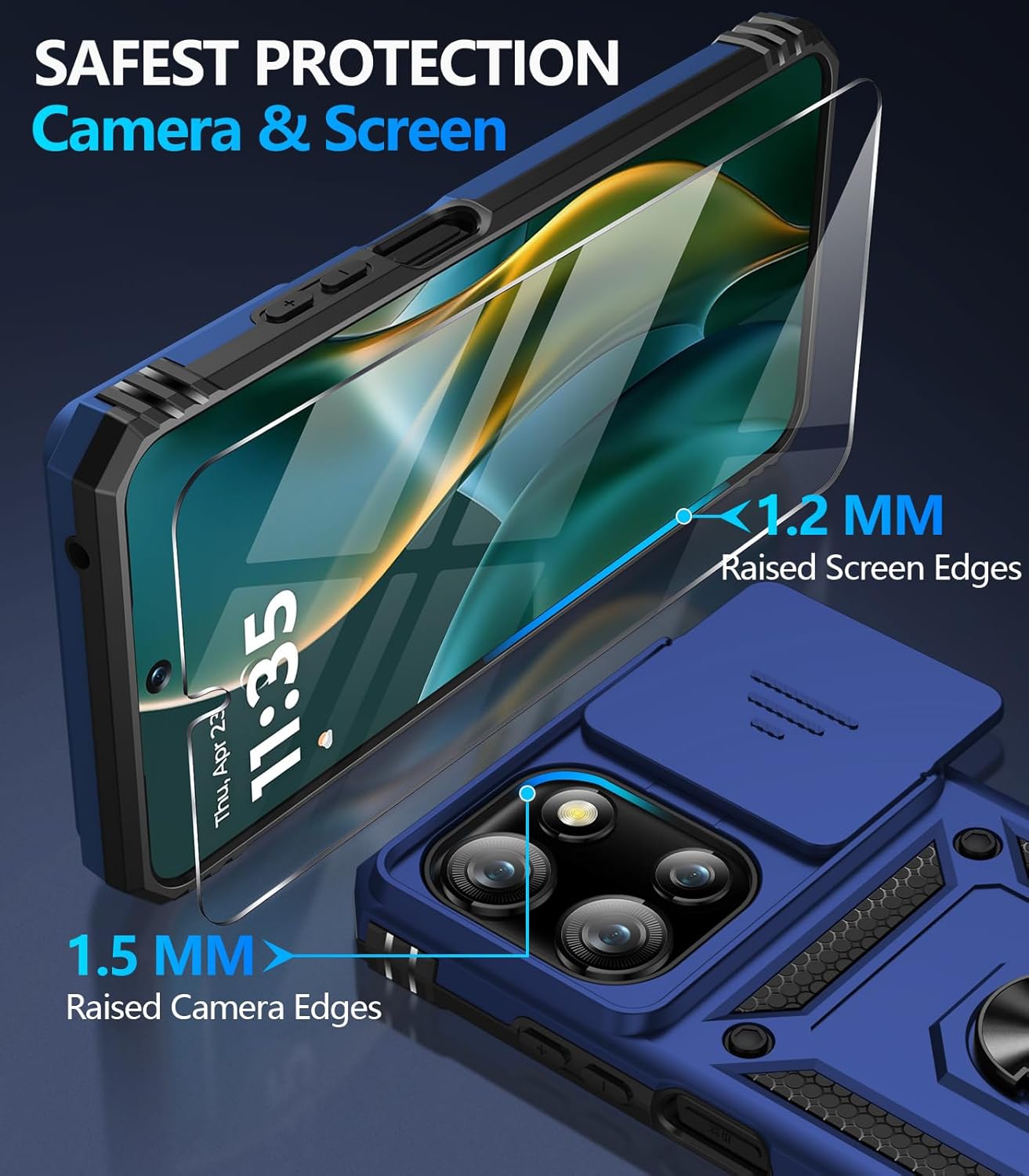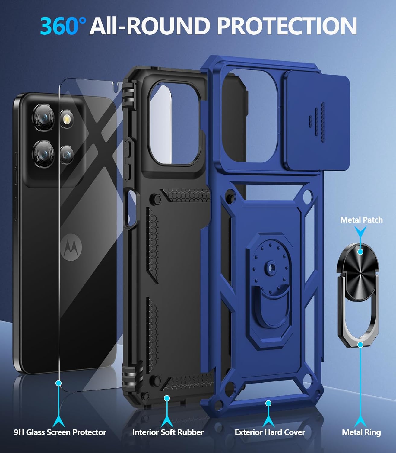 Taisairu for Motorola Moto G 5G 2025 Case with Screen Protector & Slide Camera Lens Cover, Built-in 360°Rotate Magnetic Ring Stand Shockproof Protective Phone Case for Moto G 2025 Case (Blue)