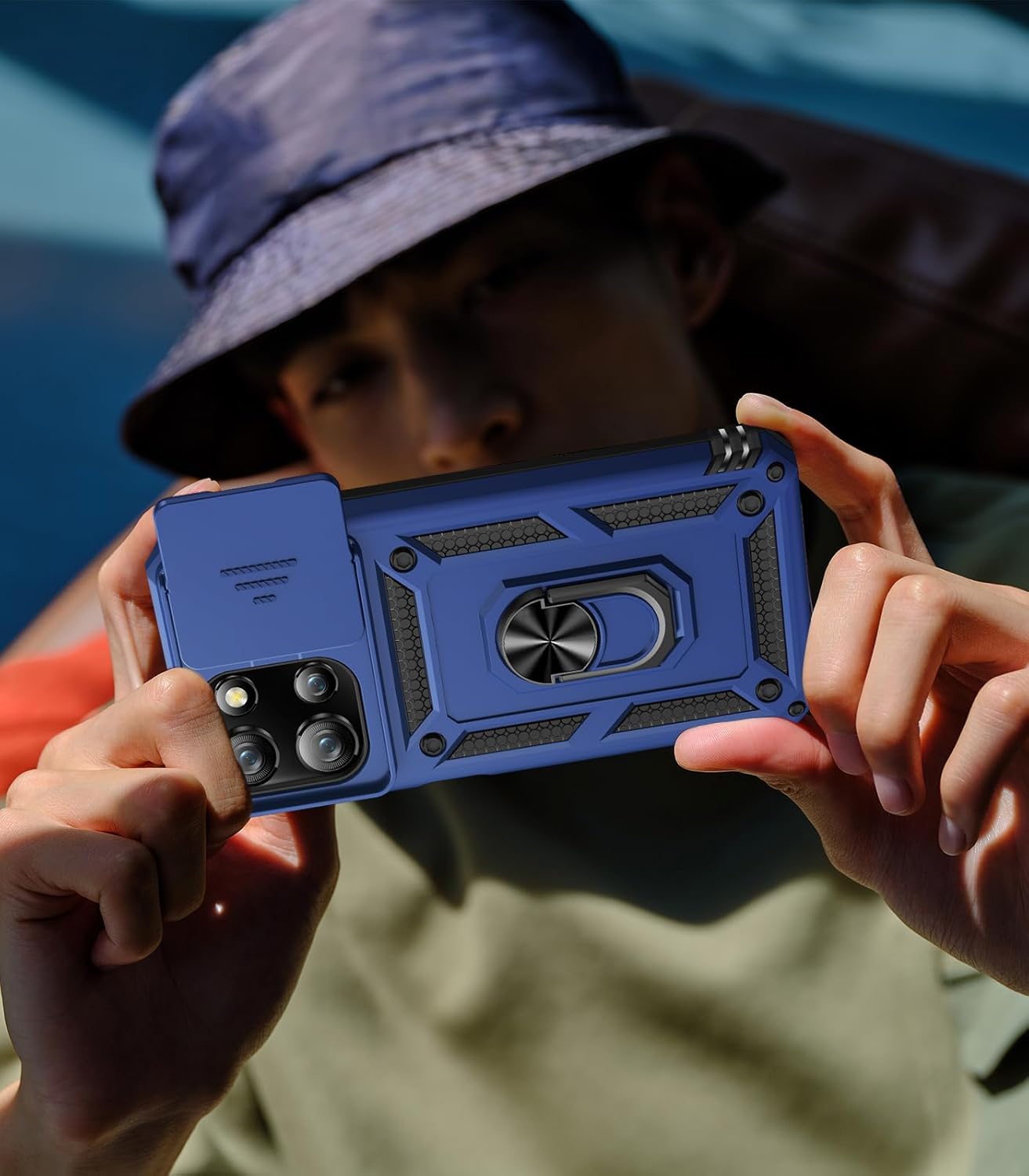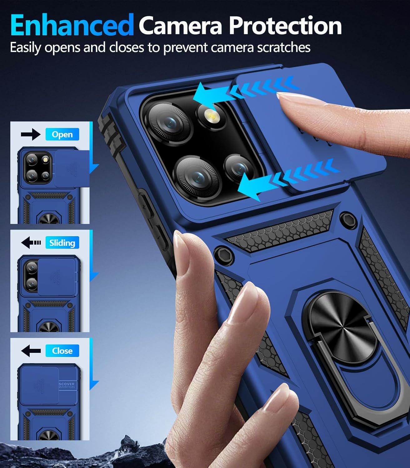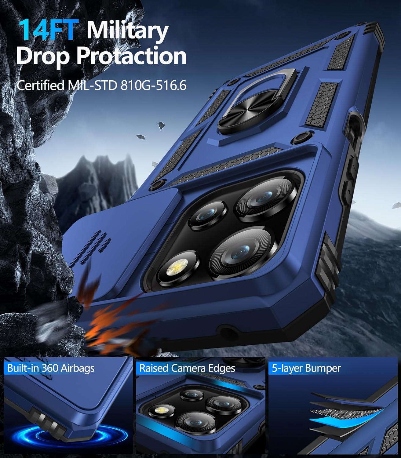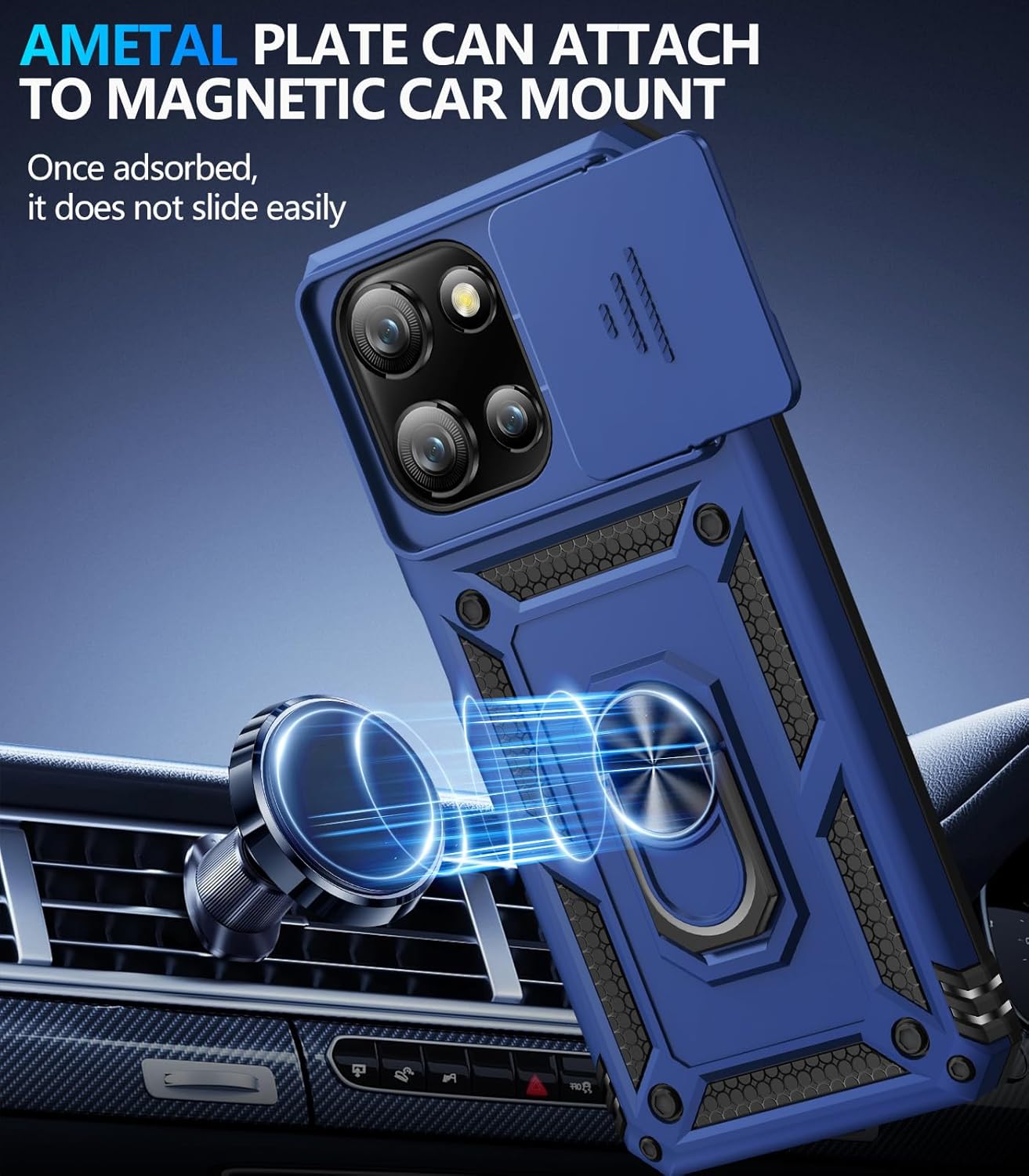 Taisairu for Motorola Moto G 5G 2025 Case with Screen Protector & Slide Camera Lens Cover, Built-in 360°Rotate Magnetic Ring Stand Shockproof Protective Phone Case for Moto G 2025 Case (Blue)
