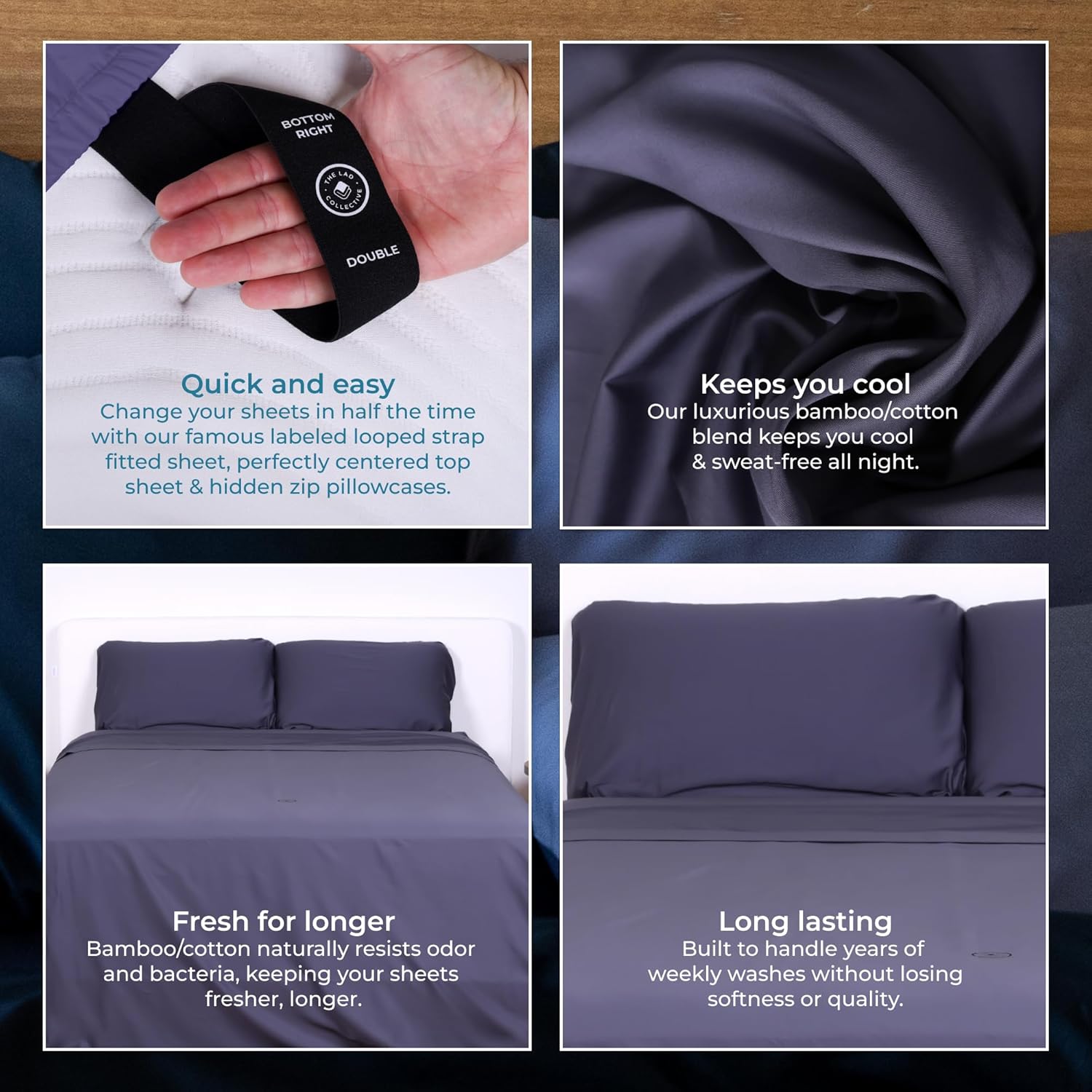 THE LAD COLLECTIVE 3.0 King Bedding Set – King Bedding Sets – 4-Piece Bedset w/Fitted Sheet, Top Sheet & 2 Standard Pillowcases [Duvet Not Included] – Bamboo-Cotton – Yosemite [Charcoal]