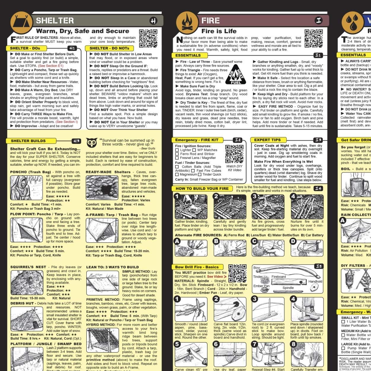 EMERGENCY SURVIVAL: Durable and waterproof emergency survival instructions to manage and endure any natural disaster. Disasters can spark extreme brain fog so we include what can seem obvious but is critical to your safety