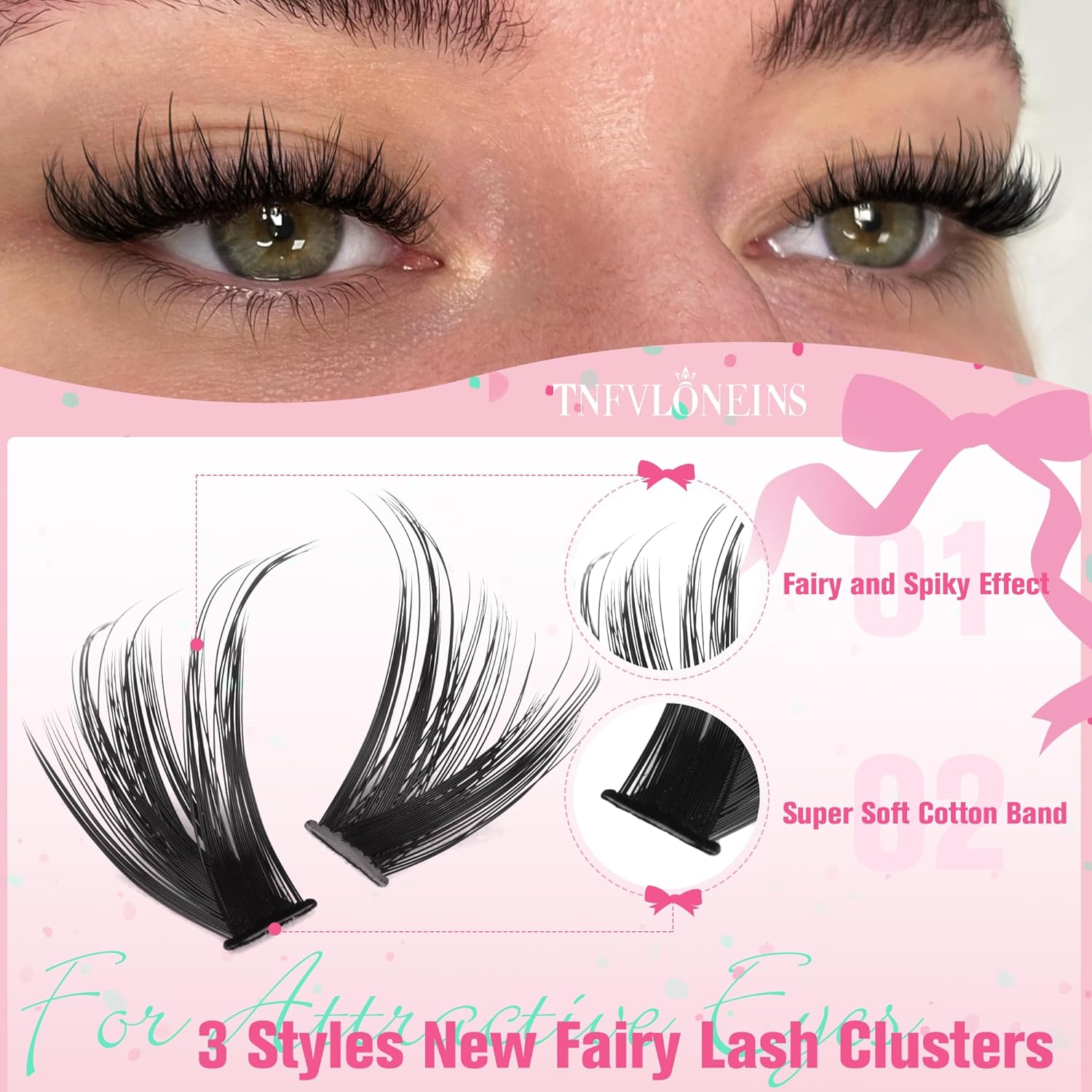 3 Styles Wispy Lash Clusters: 3 Styles new spiky eyelash clusters. Each cluster lashes with new manga and spiky effect, giving the eyes a D curved and deep magnification effect. Easy to create impressive eye makeup for every occasions