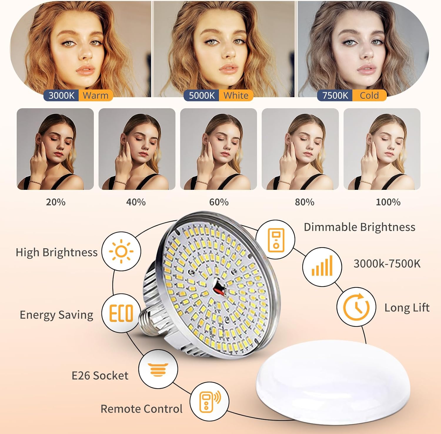 【What Will You Get】Our package contains everything you need: 1 X Softbox, 1 X Remote, 1 X LED Bulb, 1 X 60in Tripod Stand and 1 X Soft Diffuser