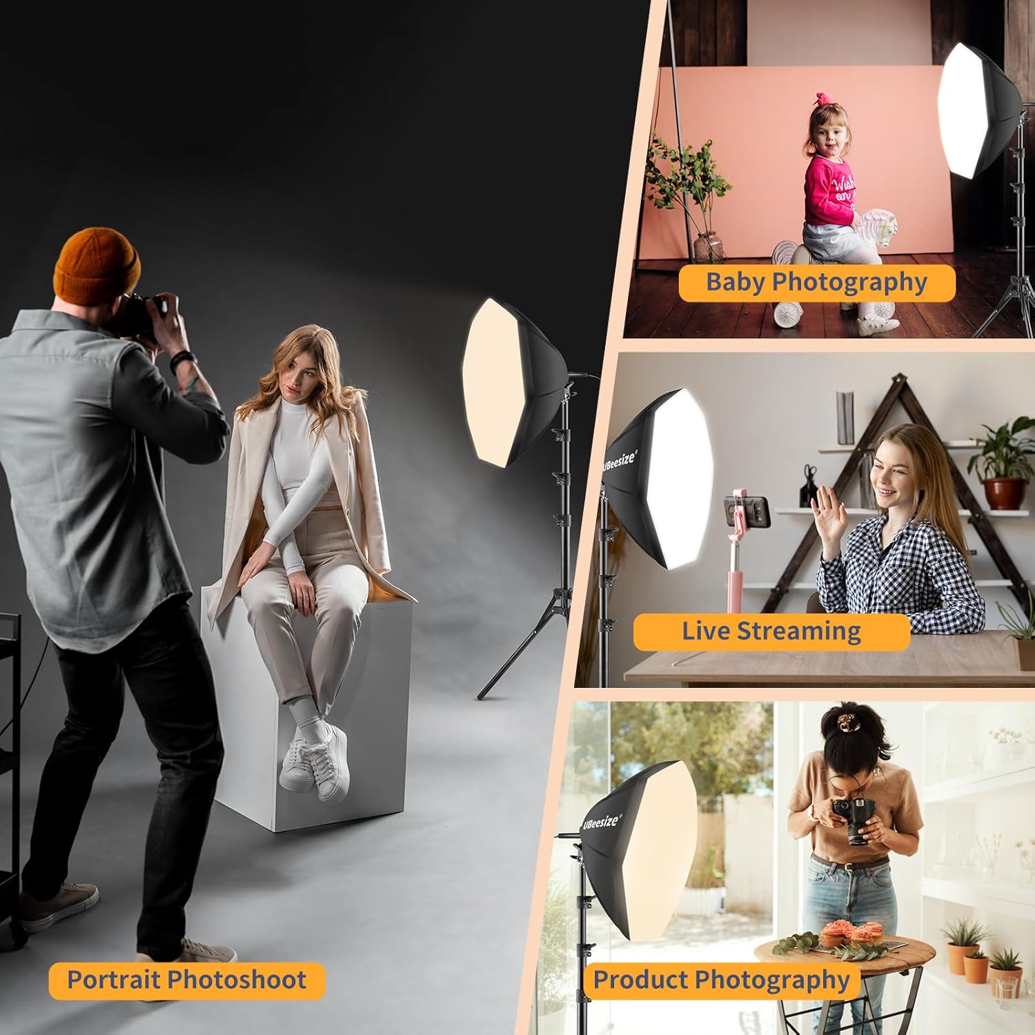 【Flexibility at Your Fingertips】This UBeesize softbox comes with a 210° rotatable head that can adjust the angle according to your needs. It is suitable for photography art, meeting different needs such as photography lighting, live broadcast, video fill light, etc. It can easily create perfect lighting effects for indoor shooting and make photos more attractive