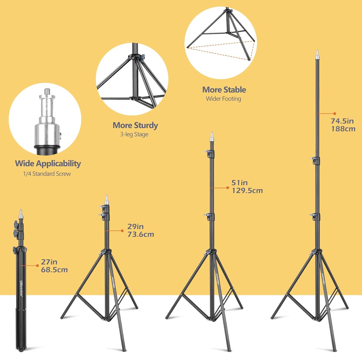 【Long-lasting Tripod Stand】 Equipped with two tripod stands which are made of premium aluminum-alloy material, easily resist scratches from hard objects, firm enough to support longer service life, provides great safety, reliability and enough stability for your lighting softbox while you are photographing.