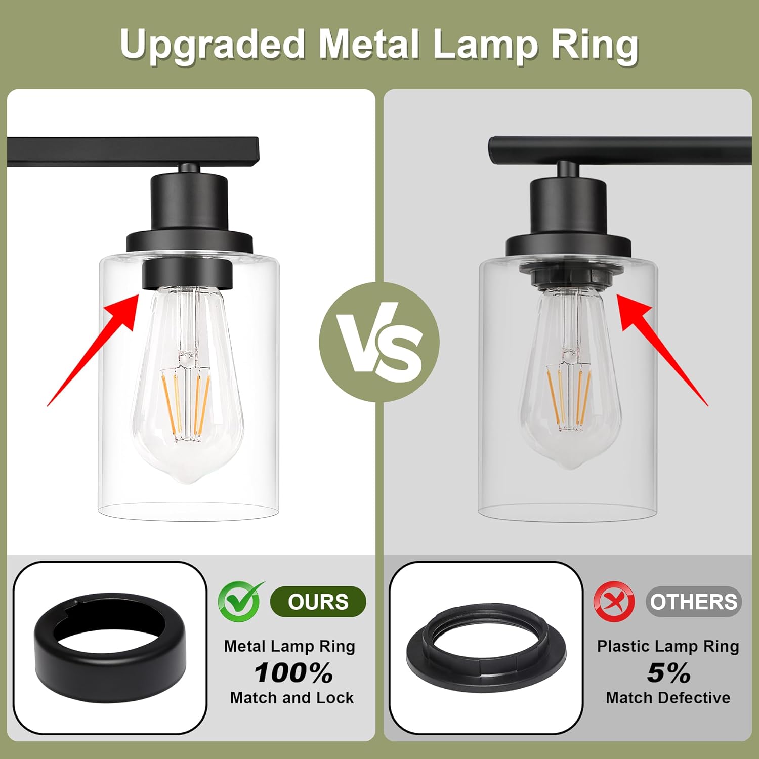 Modern Minimalist Design: This 4-light bathroom light fixture features matte black finish lamp frame and clear glass shades,which is suitable for various decoration styles. A perfect choice to enhance aesthetics for bathroom remodel.