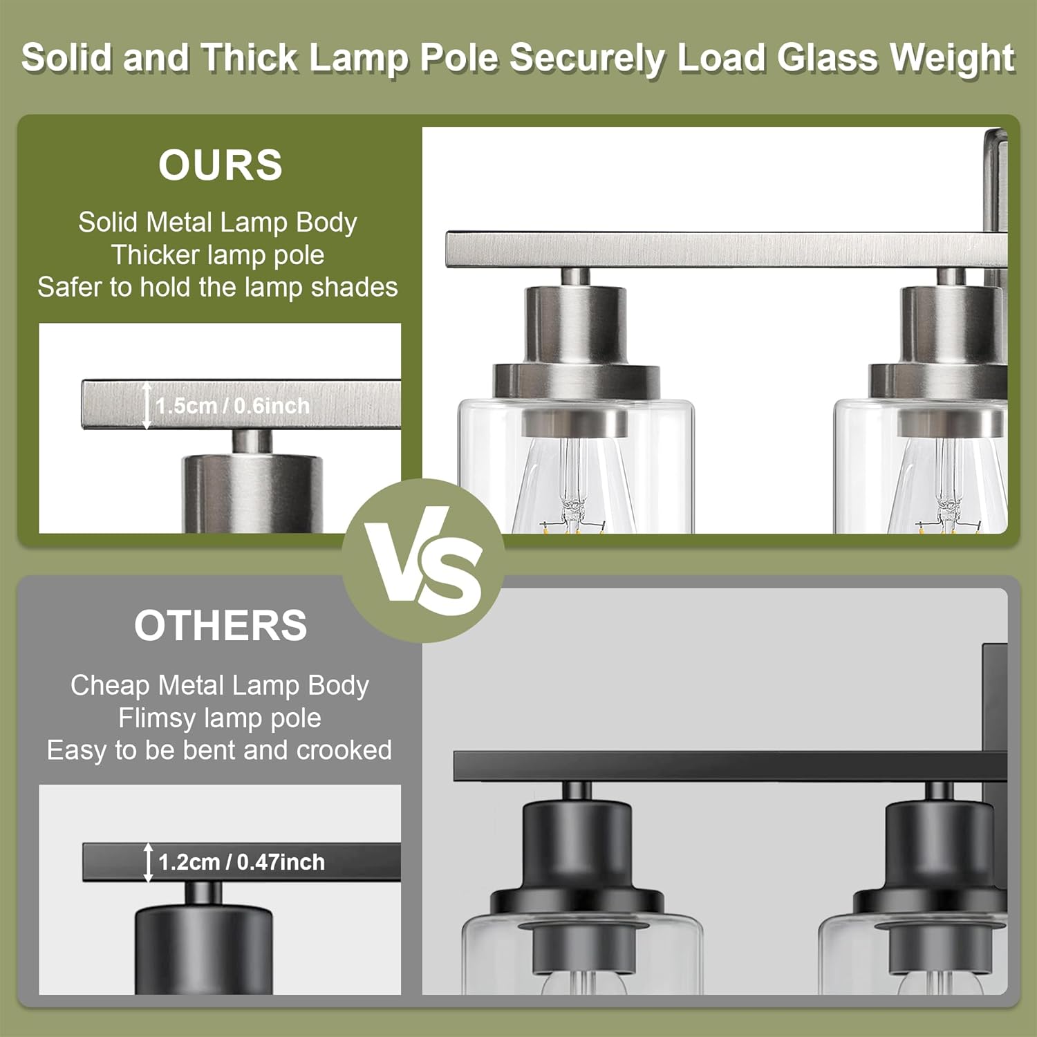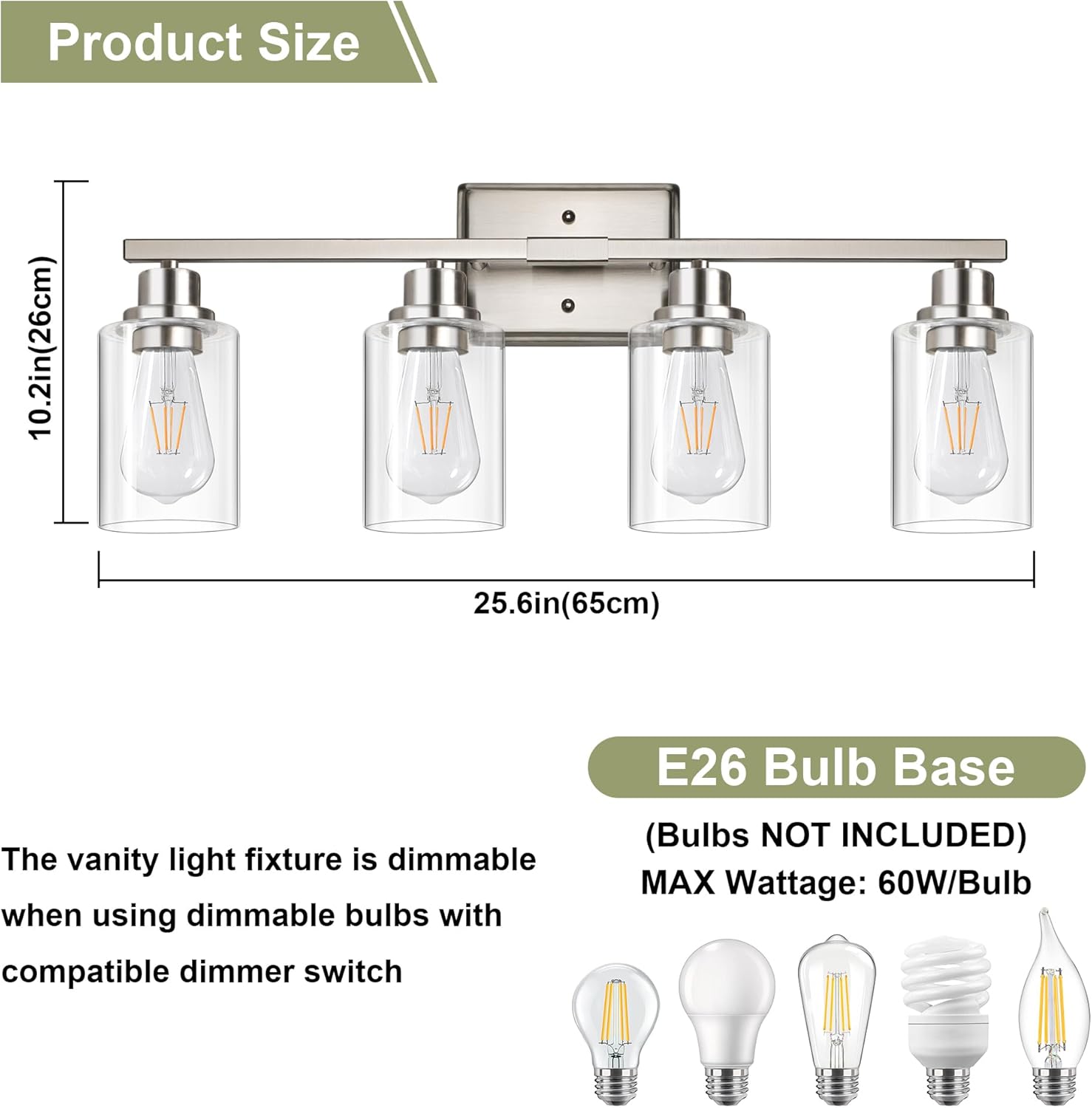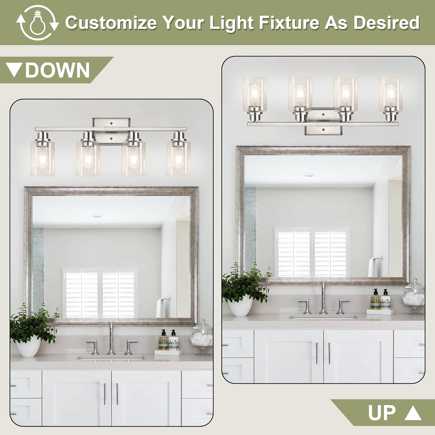 Unicozin Modern Bathroom Light Fixtures, 4 Light Vanity Lights Over Mirror, Brushed Nickel Wall Lamp with Clear Glass for Living Room Cabinet Bedroom Porch