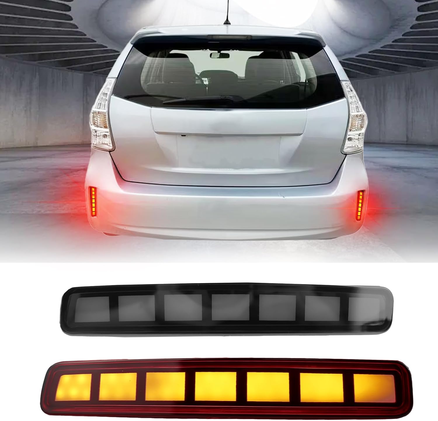 Upgrade LED Rear Bumper Reflectors Light Fog Brake Tail Lamps Compatible with 2012-2017 Toyota Prius V & 2014-2016 Scion tC Replace OEM Stock Reflector Sequential Turn Signal Light (Smoked)