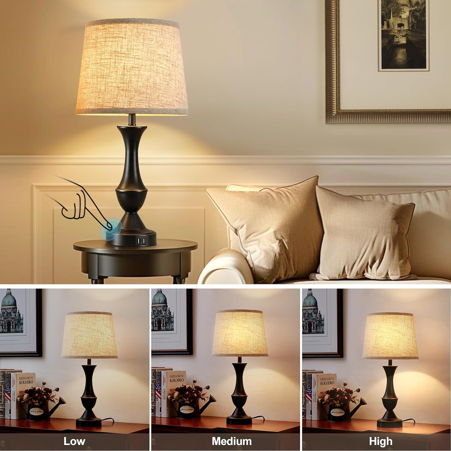 Table Lamps Set of 2 with 3-Way Dimmable Touch Control USB Ports