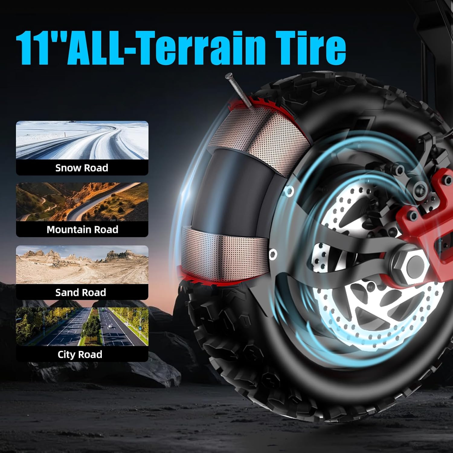 ✅ 11-Inch Off-Road Tires – Ride confidently on various terrains with large 11-inch all-terrain tires. Designed for superior grip and shock absorption, this off road electric scooter handles rough roads, gravel, and grass with ease.