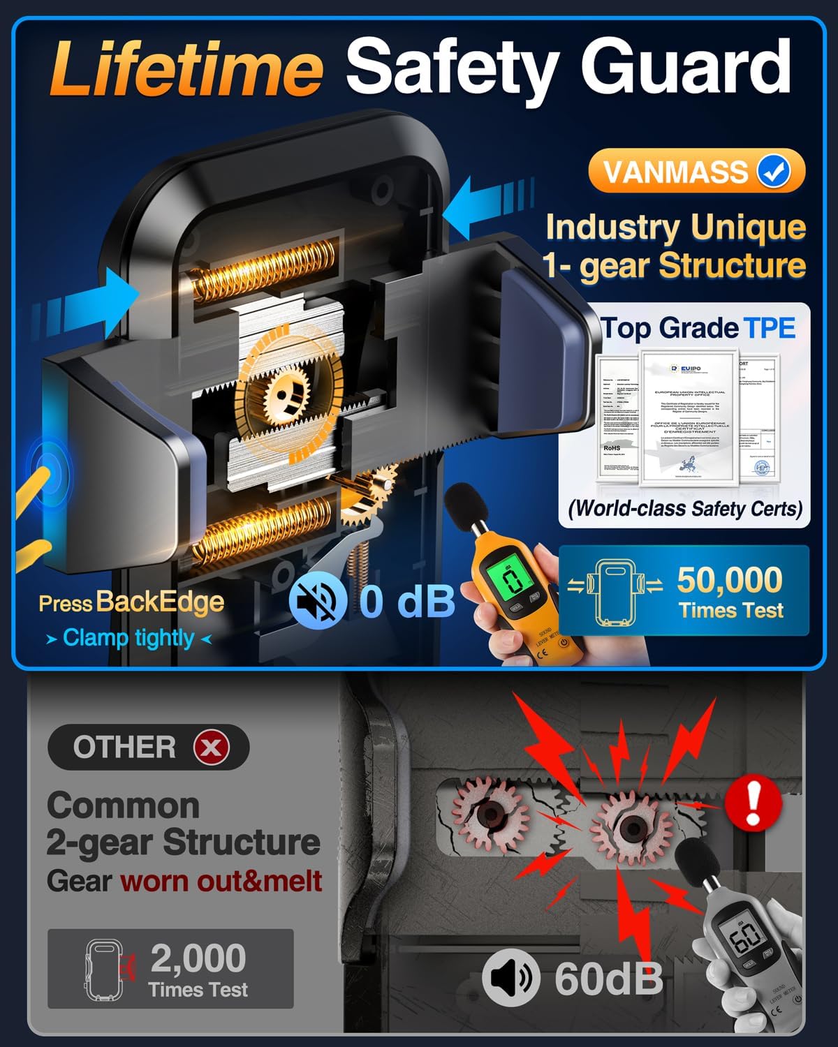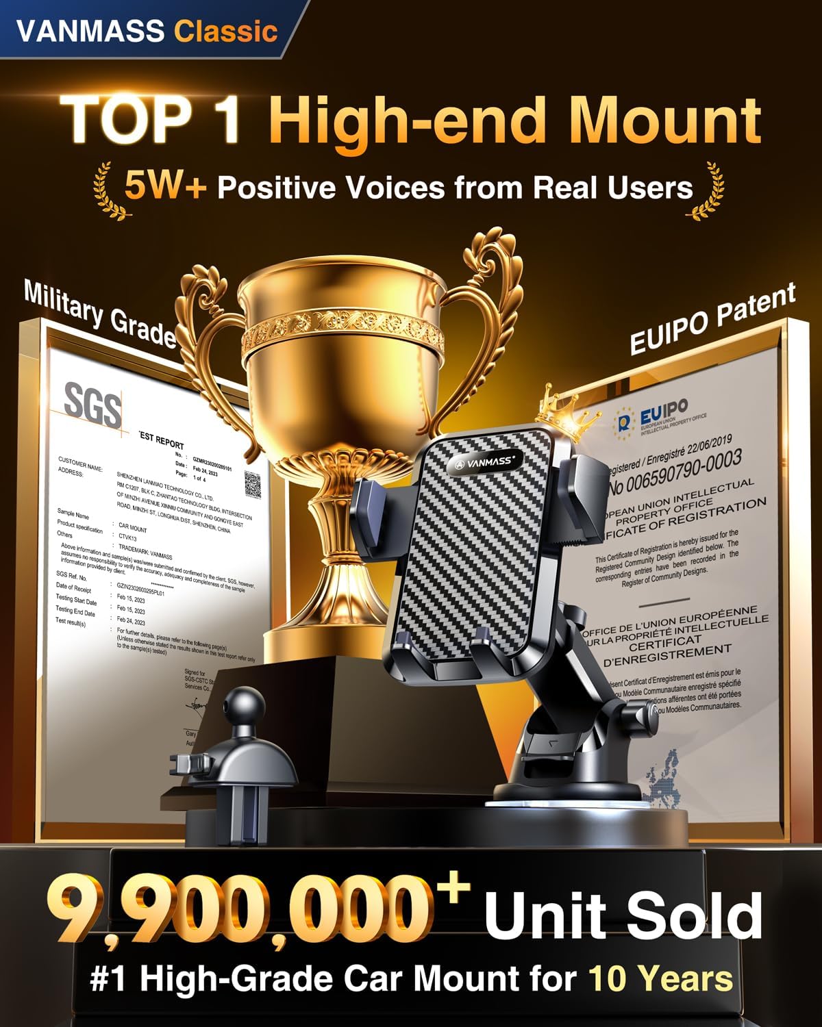 VANMASS ใ€85+LBS Strongest Suction & Military-Grade 2025 Ultimate Car Phone Mountใ€Patent & Safety Certsใ€‘ Cell Phone Holder Truck Stand for Dashboard Windshield Vent for iPhone 16 15 Pro Max 14 Samsung