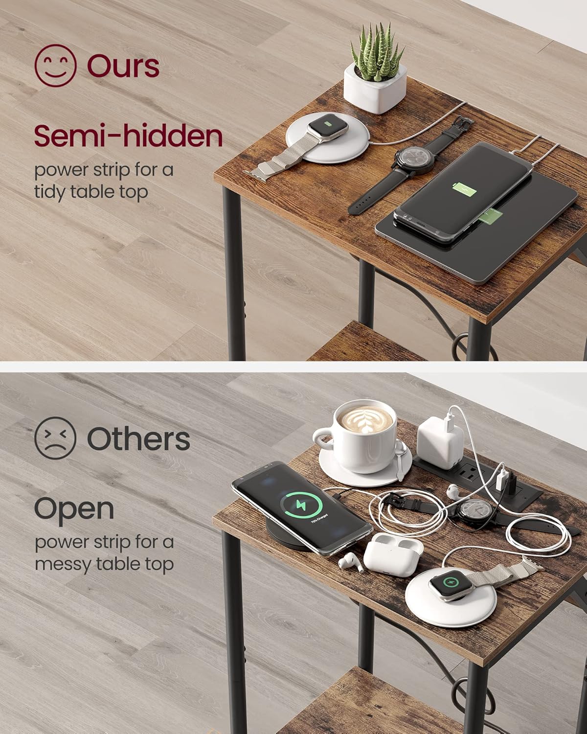 VASAGLE End Table with Charging Station, Set of 2, Small Side Tables for Living Room, Bedroom, Nightstand with Outlets and USB Ports, Bedside Table with Storage Shelf, Rustic Brown and Black