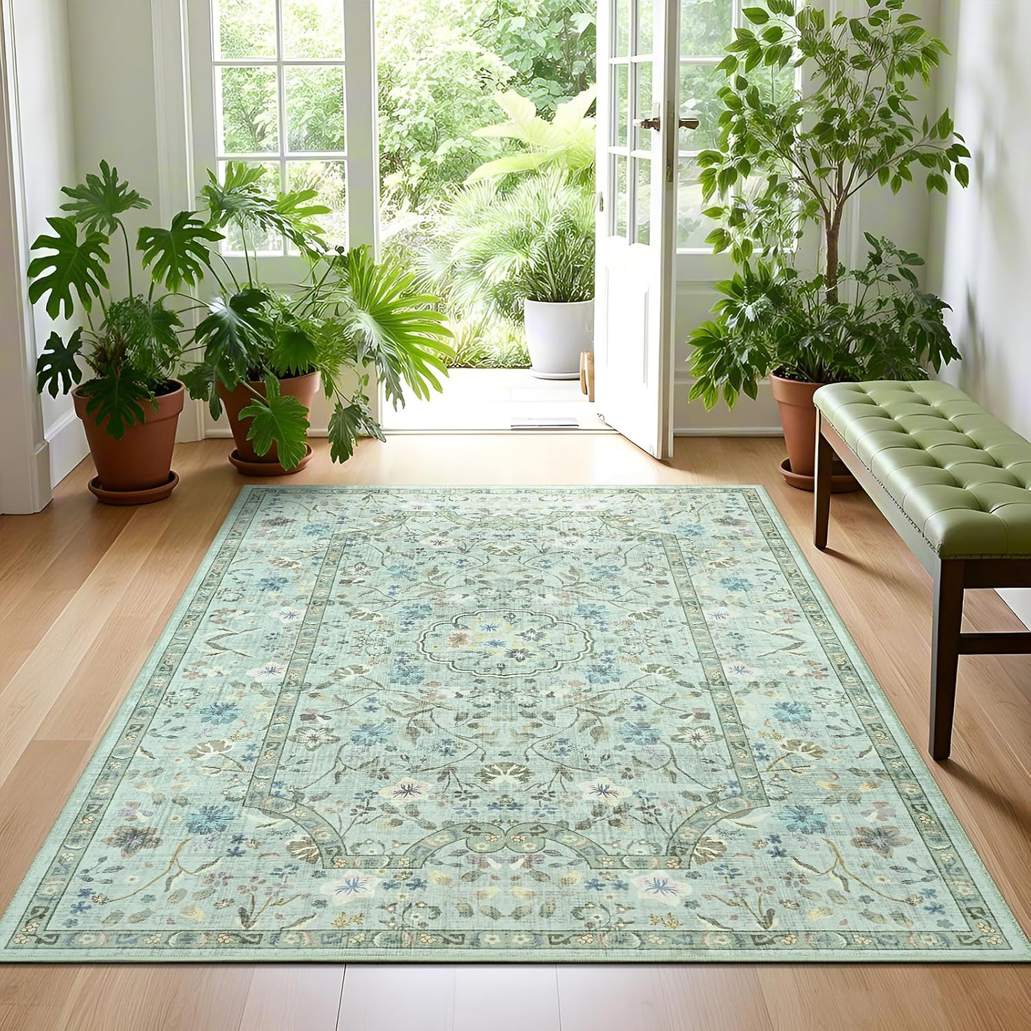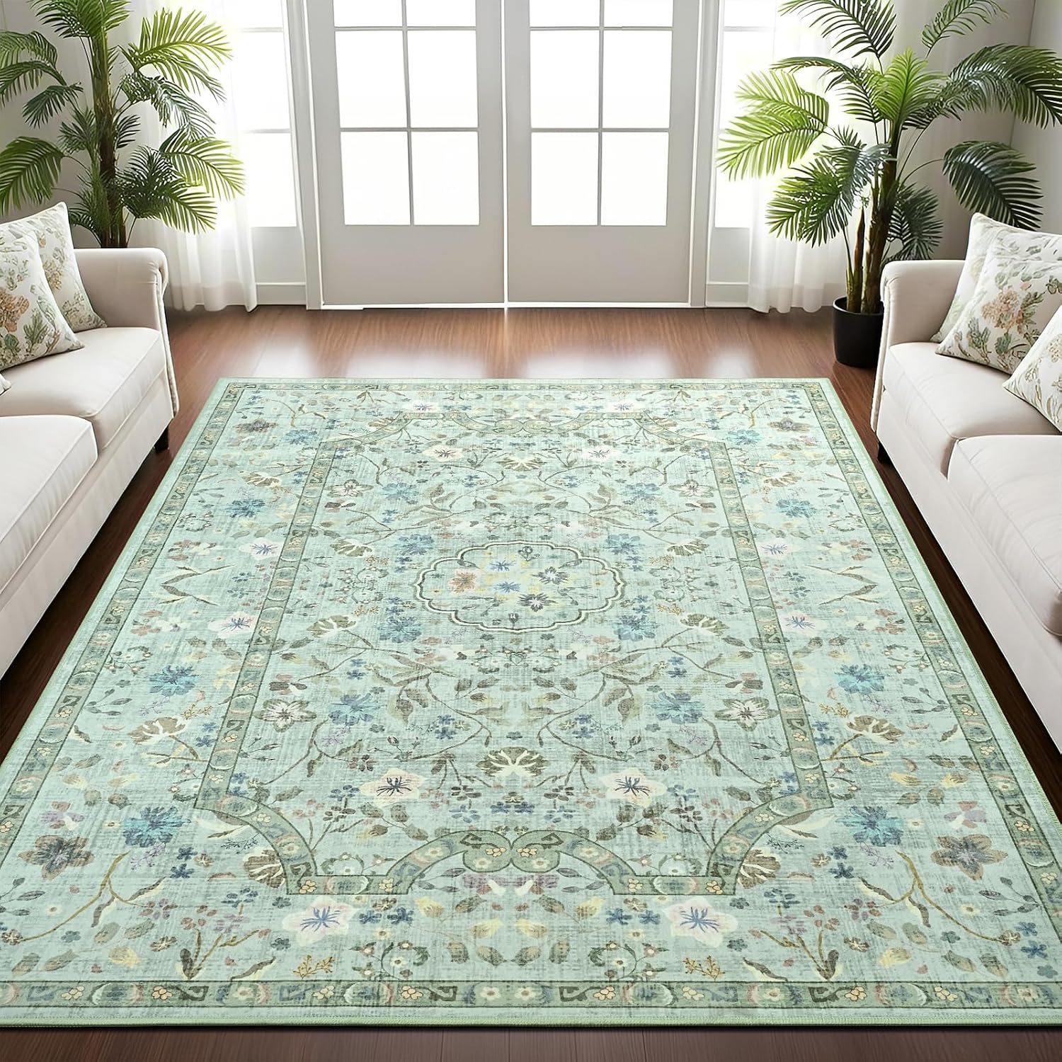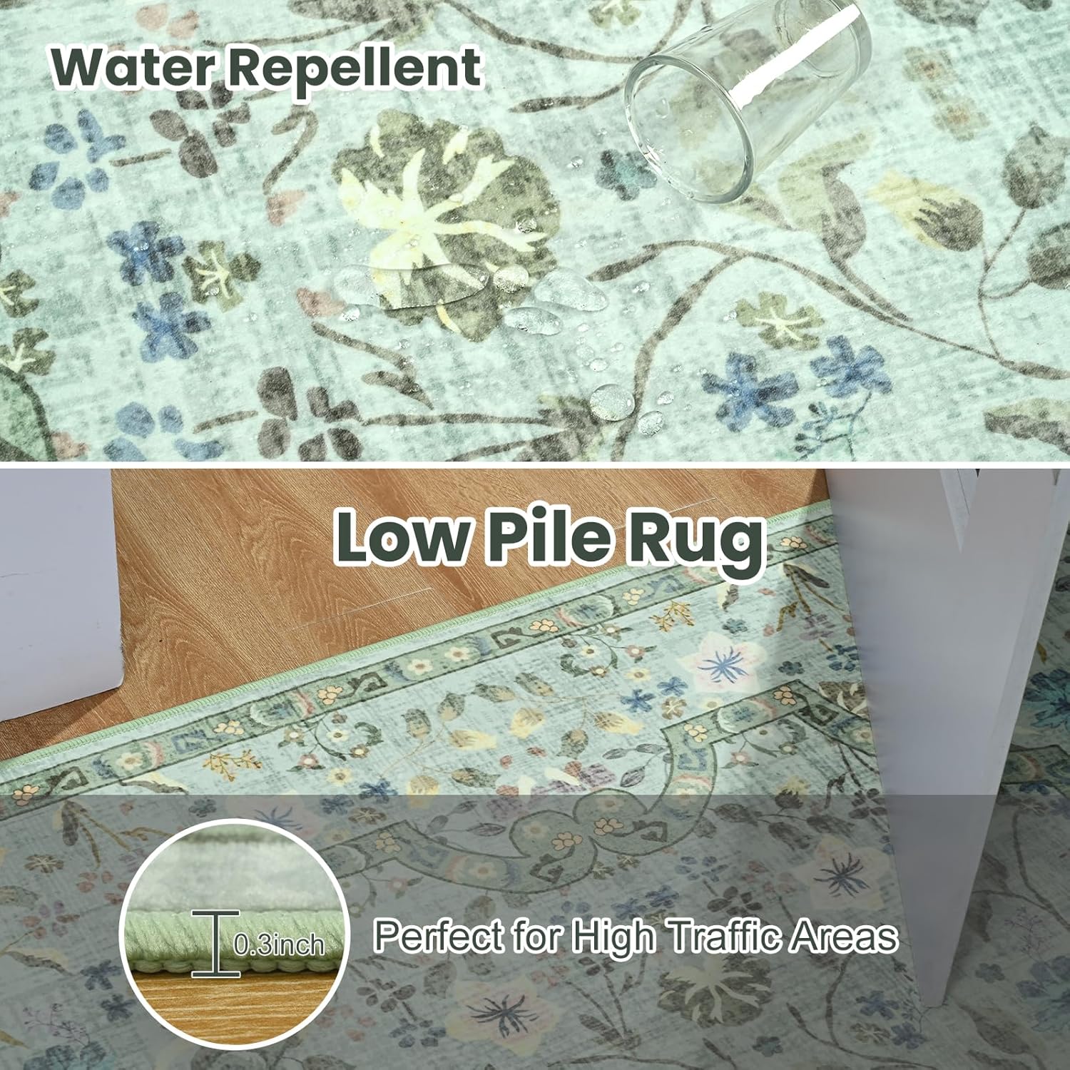 Low Pile Ultra-Thin Design: This vintage floral rug is only 0.3” thick with soft surface. Non-traditional thick and stiff profile for easy cleaning and handling.Suitable for high-traffic areas, can placed in bedroom, living room, and underneath furniture
