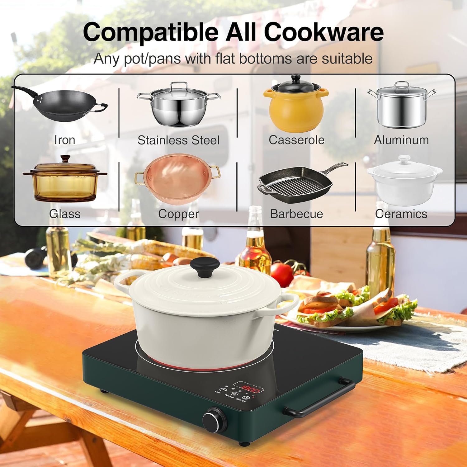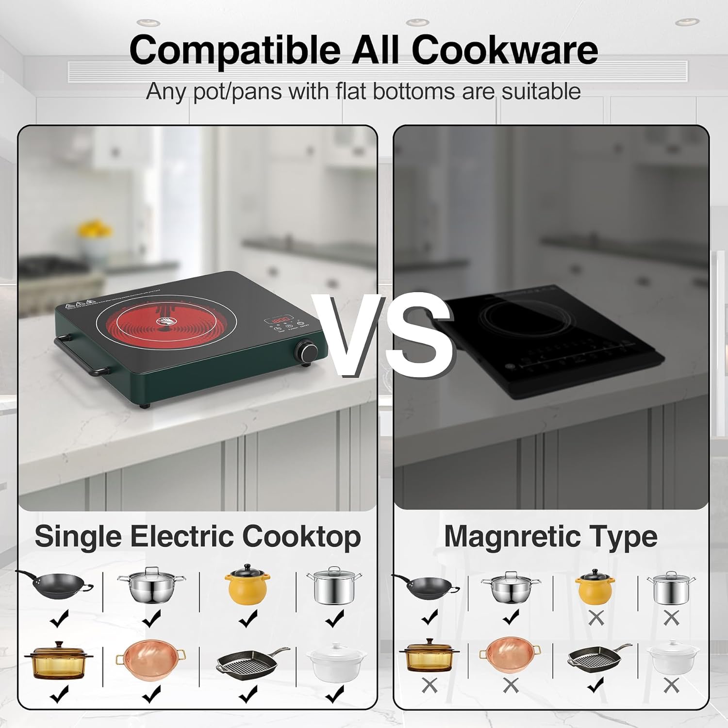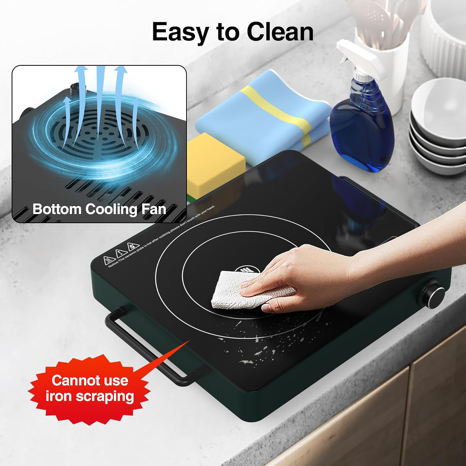 VBGK Electric Cooktop,1800W Single Burner Cooktop with 9 Power Levels, Portable Cooktop with Timer,Knob Control,110-120V Induction Cooktop for Home Camping