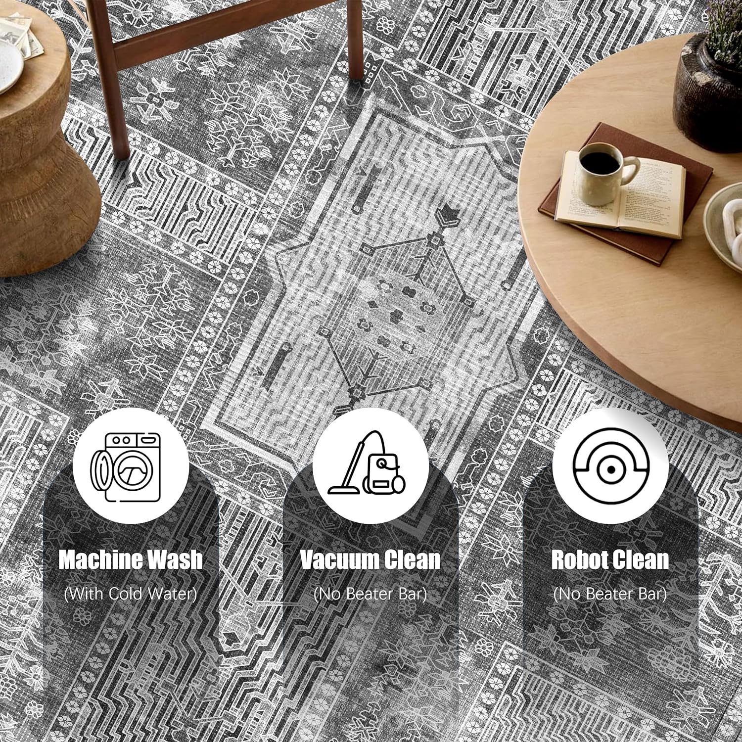 【Easy Maintenance】Our vintage rug is machine washable, allowing for hassle-free cleaning. Vacuuming, broom cleaning, or spot-cleaning with a rag are also convenient options. Any temporary wrinkles from the packaging can be smoothed out by rolling the rug in the opposite direction to allow creases to settle.
