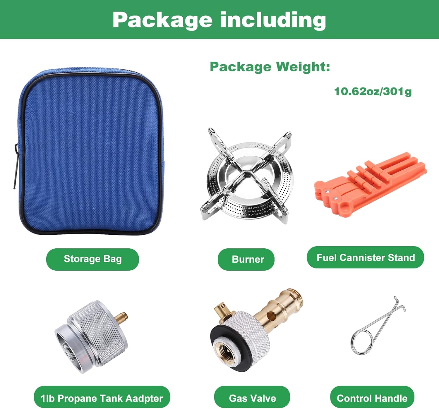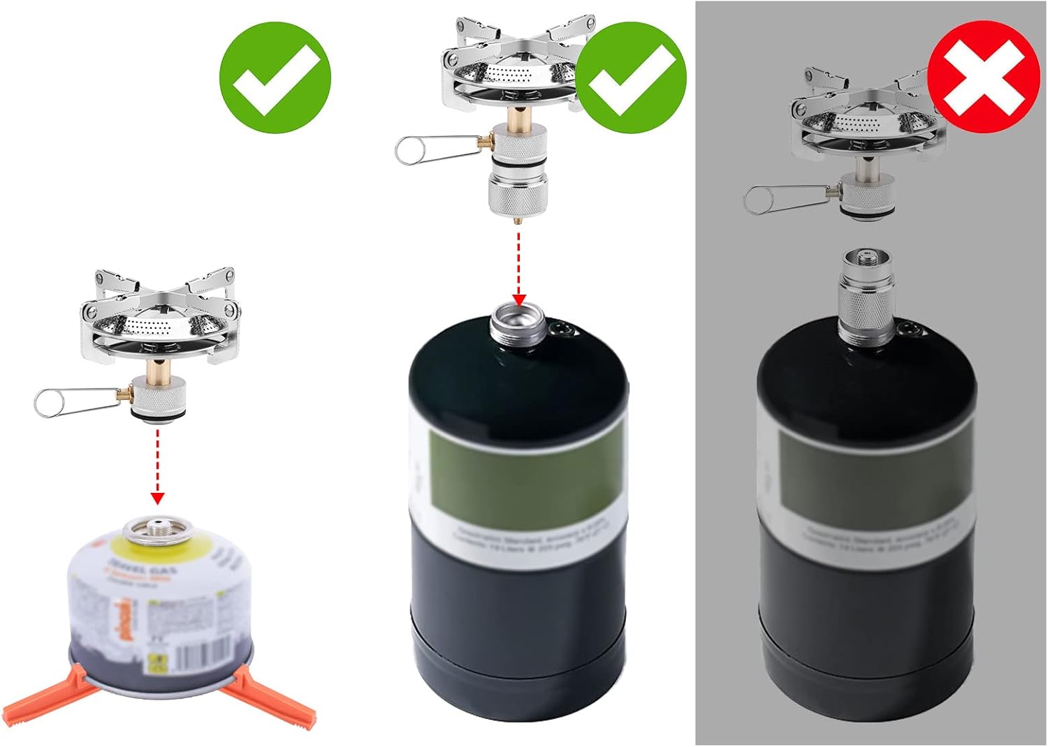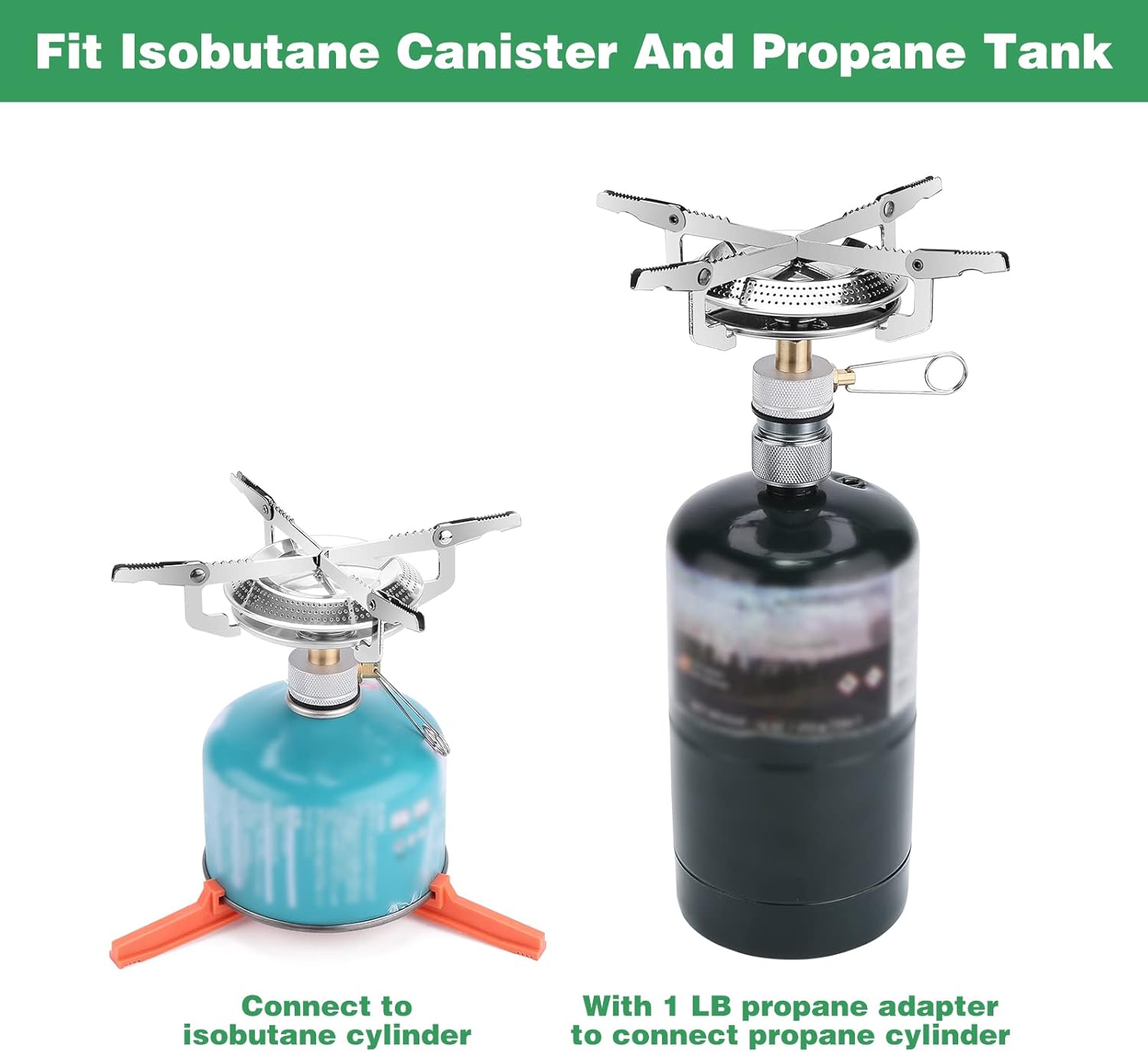 Compatiable with 2 Kinds of Gas Canister: WADEO portable camping stove burner is not only compatible with isobutane fuel canister, but also compatible with 1LB Propane Tank(You need to use the camping stove adapter which we provided)(Can’t be used for butane canister)