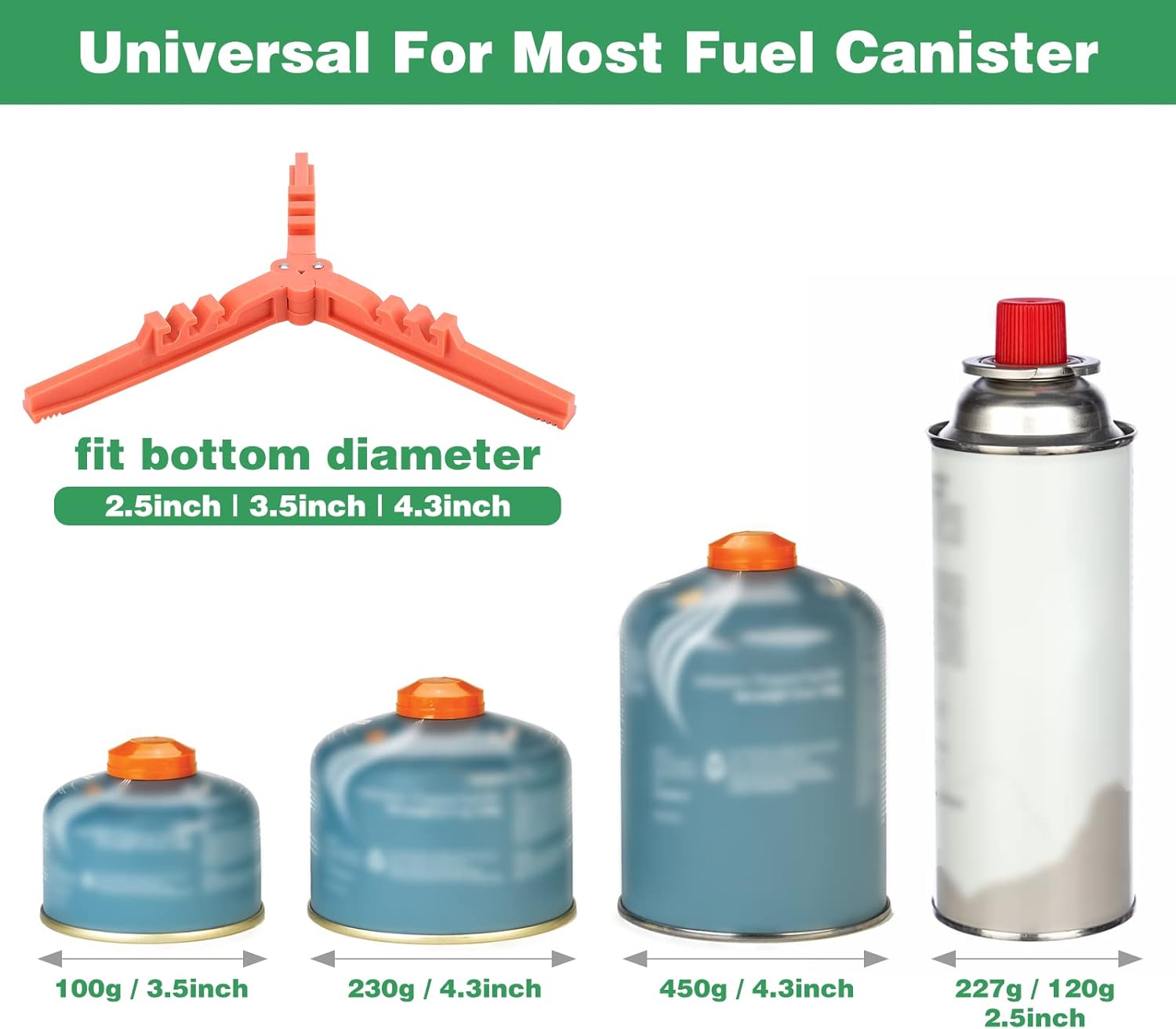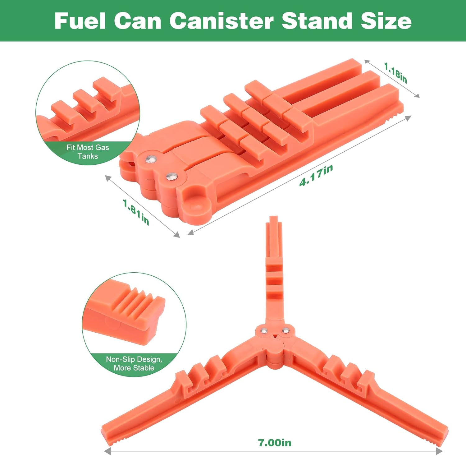Compact Fuel Canister Stand: Non-Slip design, made of strong plastic, making it durable, sturdy and easy to attach to the bottom edge of canistermore stable. The fuel can canister stand fits 2.5 inch/3.5 inch/4.3 inch diameter fuel can. Universal for most fuel canister.