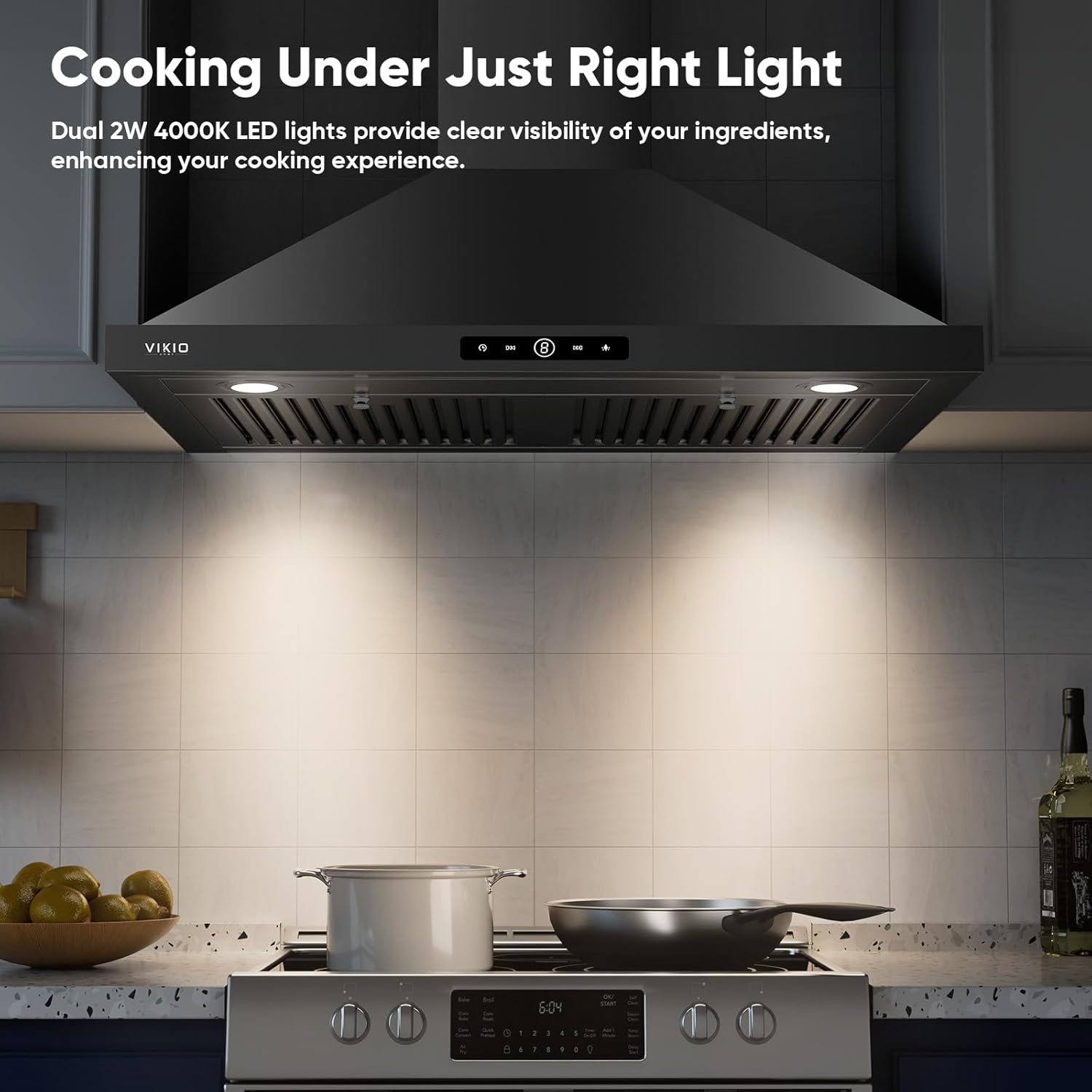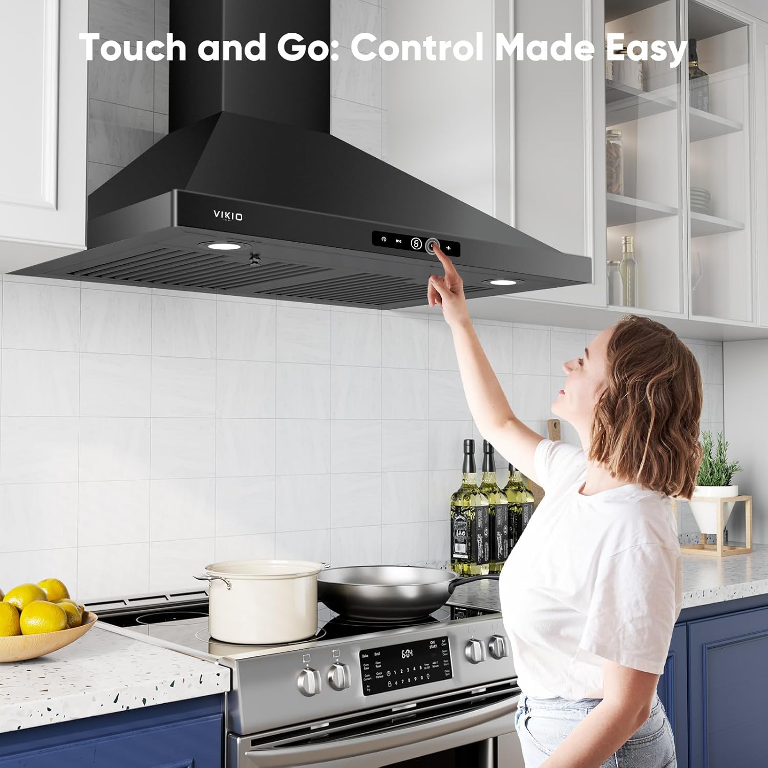 The ViKio Home wall-mounted range hood adds a practical and modern touch to your kitchen. Its stylish design, three wind speeds, delayed shut-off function, and ducted/ductless convertible duct design are both fashionable and user-friendly.