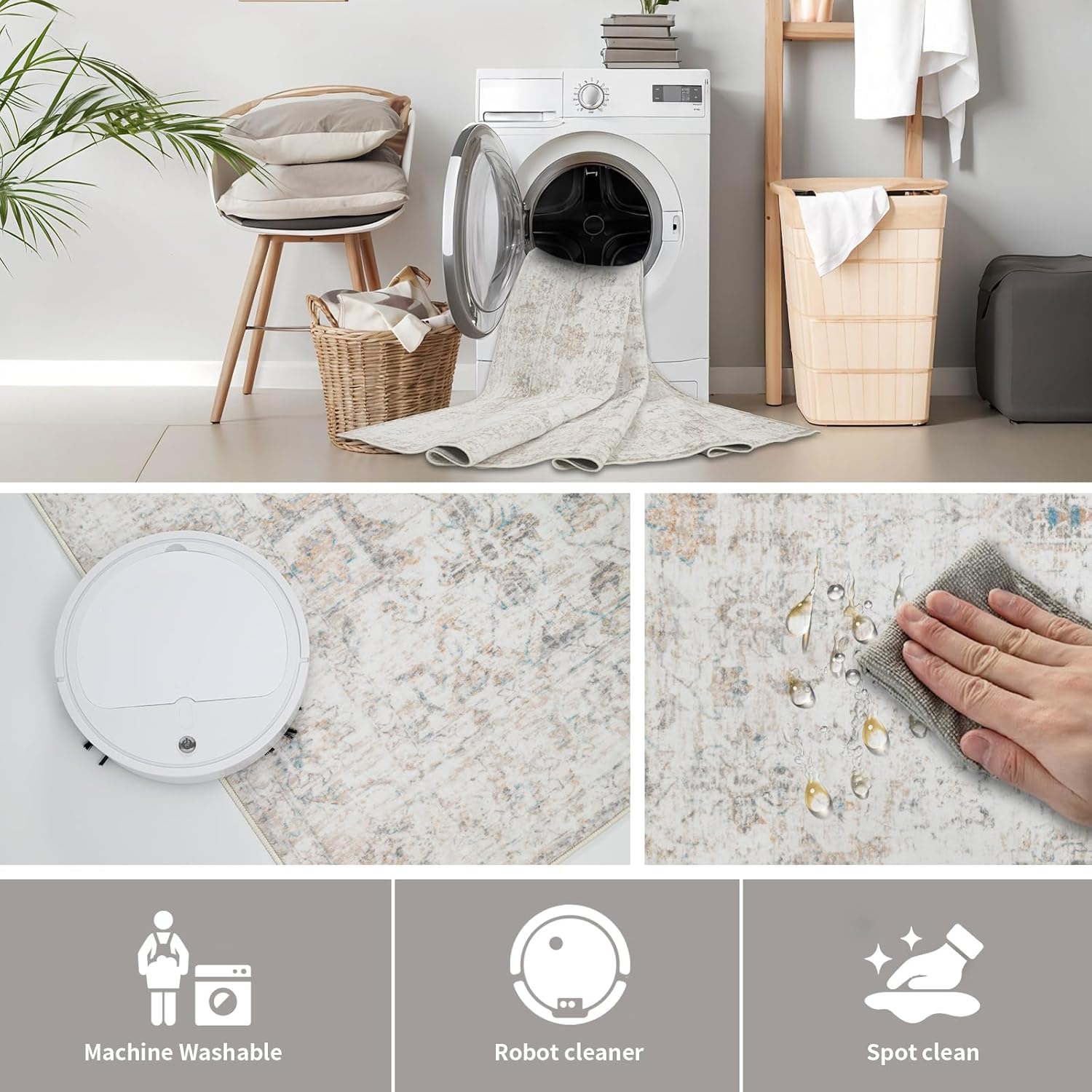 Machine Washable: The vintage rug is machine washable, you just need to throw it into the washing machine and wash it in cold water, do not bleach it and avoid direct sunlight, this will keep the vibrant color for a long time. You can also spot clean small stains on the rug with a rag or vacuum cleaner, very easy to take care of.