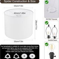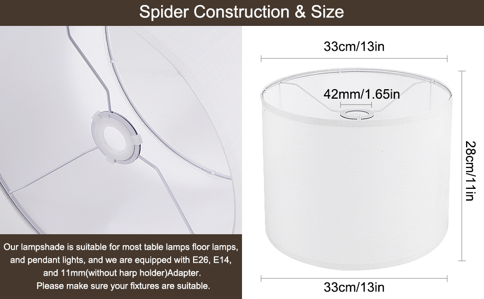 Unique size design: Top: 13 inches, bottom: 13 inches, height: 11 inches, screw thread: 1.65 inches (we have adapters suitable for various lighting fixtures), drum lamp shade can be perfectly matched with a variety of lamps, lampshade can be easily integrated, adding a unique charm to your home lighting.