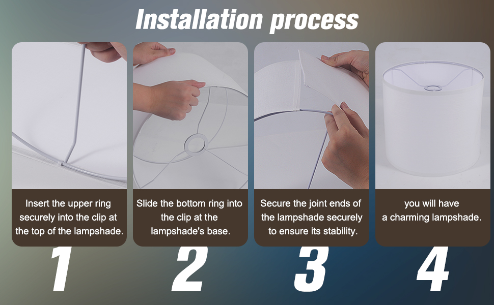 Simple assembly steps: To prevent the lampshade from deforming during transportation, these lampshades adopt a simple assembly design, which does not require complex tools or professional skills. Just follow the instructions manual steps and you can easily complete the installation in about 1 minute.