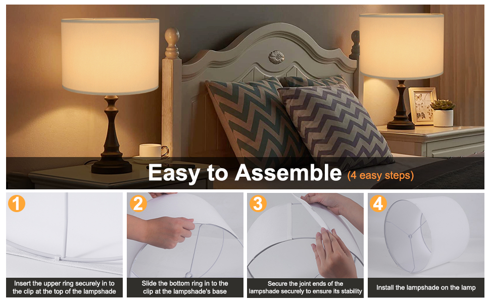 Simple assembly steps: To prevent the lampshades from deforming during transportation, these lampshades adopt a simple assembly design, which does not require complex tools or professional skills. Just follow the instructions manual steps and you can easily complete the installation in about 1 minute