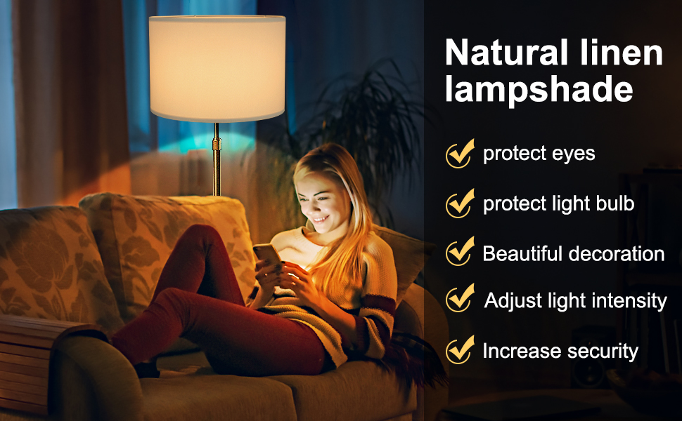 Selected white linen material: white lamp shade select high-quality white linen as the material of the lampshade, which is not only soft and comfortable to the touch but also simple and stylish in appearance. The natural texture and feel of white linen make the lampshade look more advanced and unique, adding a natural and pure feeling to your home space