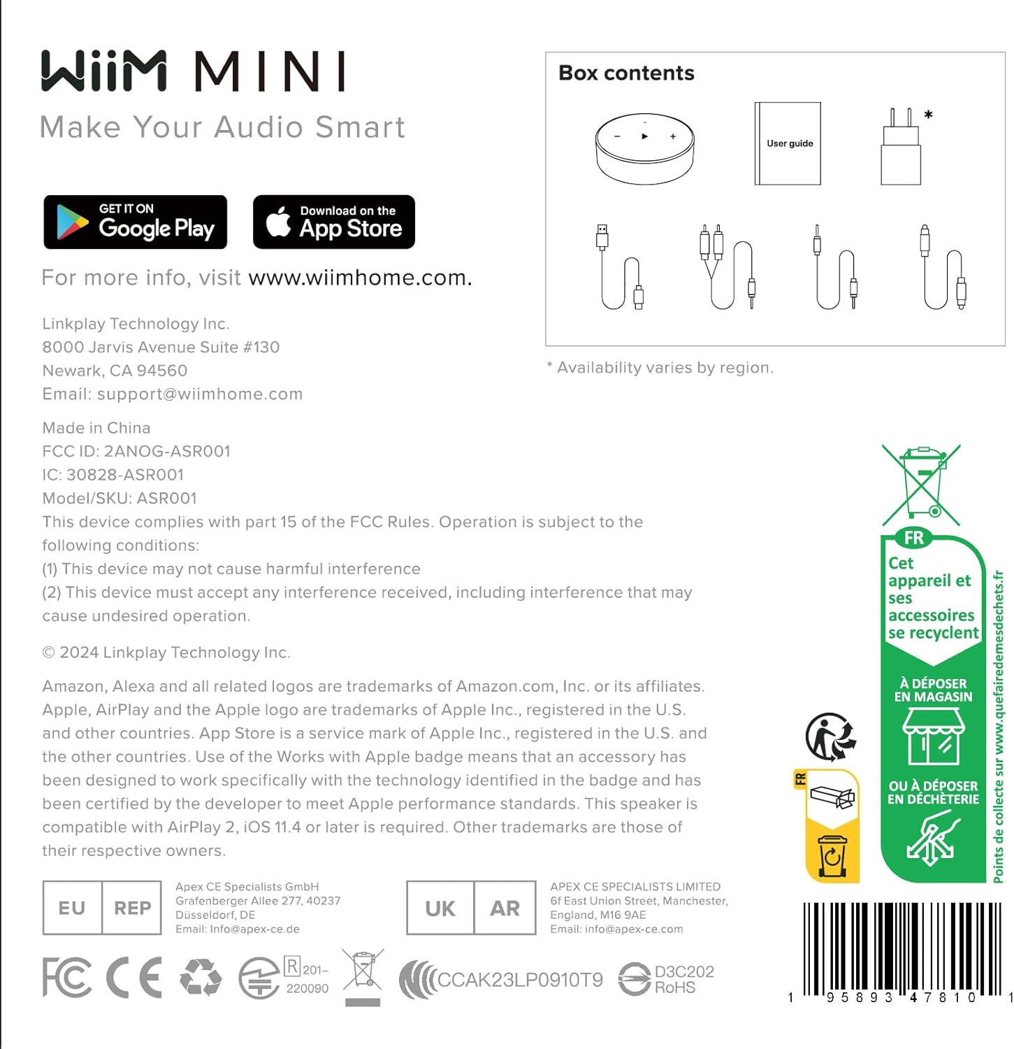 WiiM Mini AirPlay 2 Wireless Audio Streamer, Multiroom Stereo, Preamplifier, Works with Alexa and Siri Voice Assistants, Stream Hi-Res Audio from Amazon Music, Tidal and More