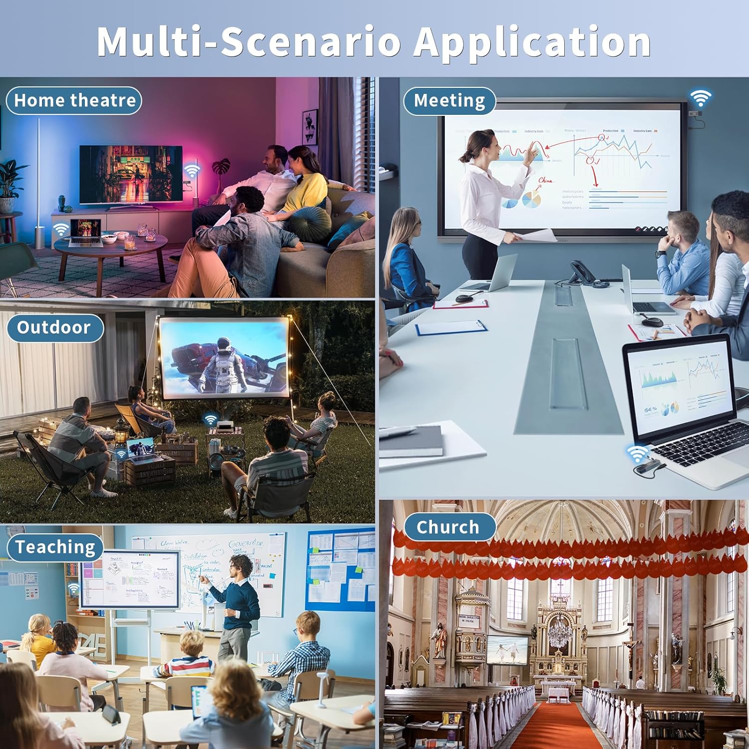 【No Need HDMI Cable,Easy Use】This wireless HDMI transmitter and receiver,easy installation, plug and play, no need for WiFi/APP/Bluetooth, say goodbye to the traditional cable connection can be audio and video signal transmission, make your office or room more neat.Use Delay <0.01s, almost 0 delay. Great for business meetings, teaching, churches, live broadcasts, business presentations home theater, parties, outdoor movie screenings, weddings, and more to use